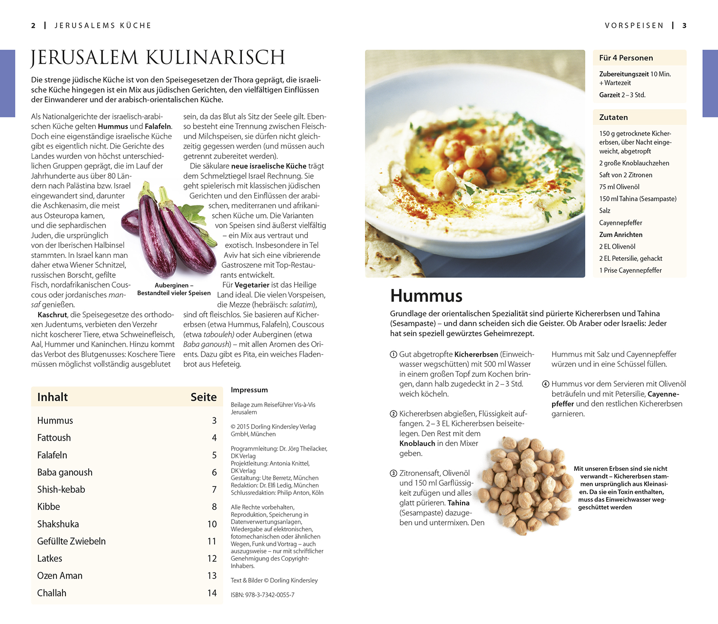 Der Vis-à-Vis Jerusalem, Israel, Petra & Sinai führt zu den schönsten und bedeutendsten Plätzen, den besten Restaurants und schlägt abwechslungsreiche Themen- und Tagestouren vor. Mit dem einzigartigen Mini-Kochbuch können Sie die Gegend auch kulinarisch entdecken.