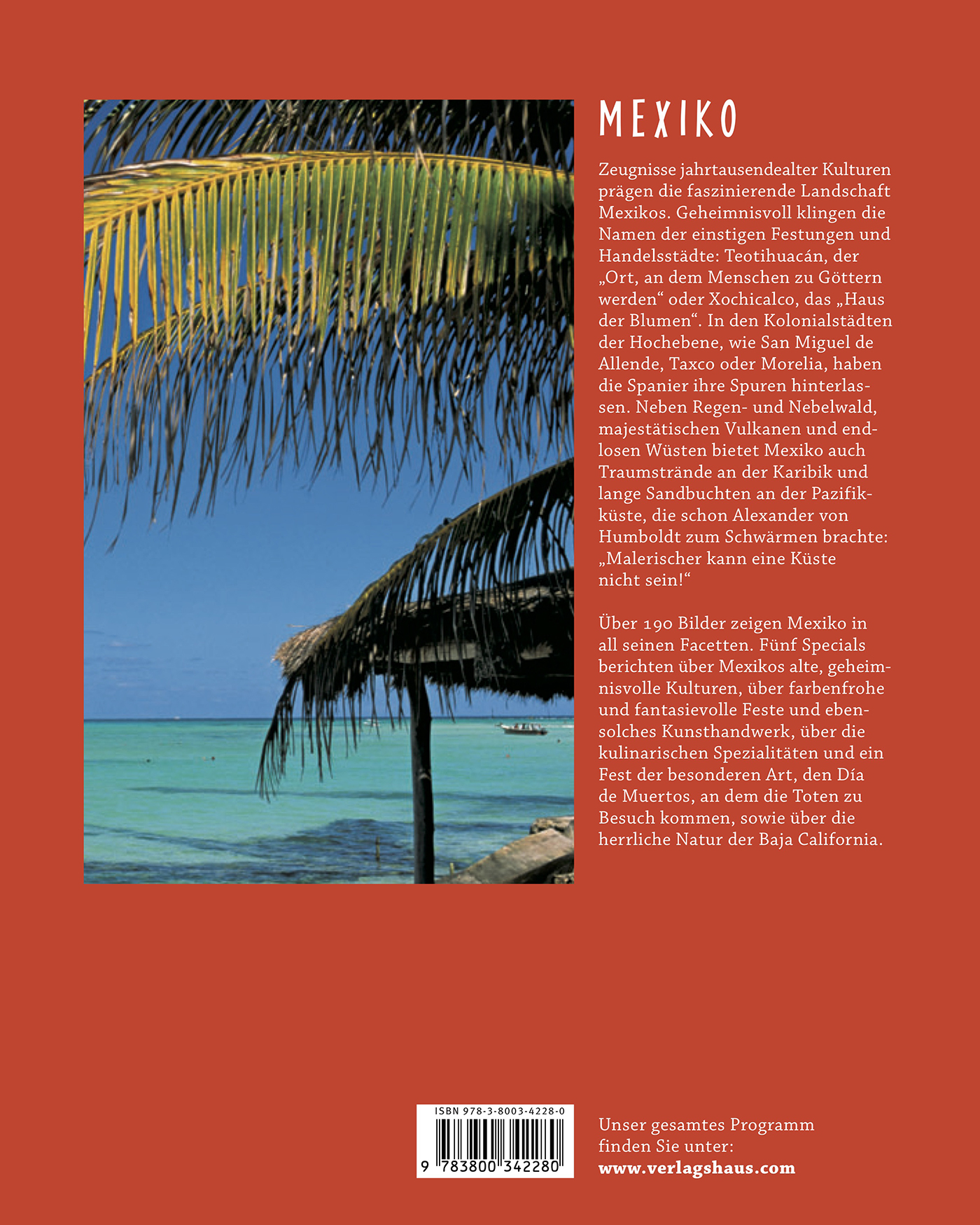 | Schlagworte | Amerika • Bildband • Chichen Itza • Inka • Karibik • Mexiko • Mexiko; Bildband • Mexiko-City • Mexiko-Stadt • Mittelamerika • Morelia • Nordamerika • Pazifikküste • Reisebildband • San Miguel de Allende • Strände • Taxco • Teotihuacan • Tuchim • Xochicalco |