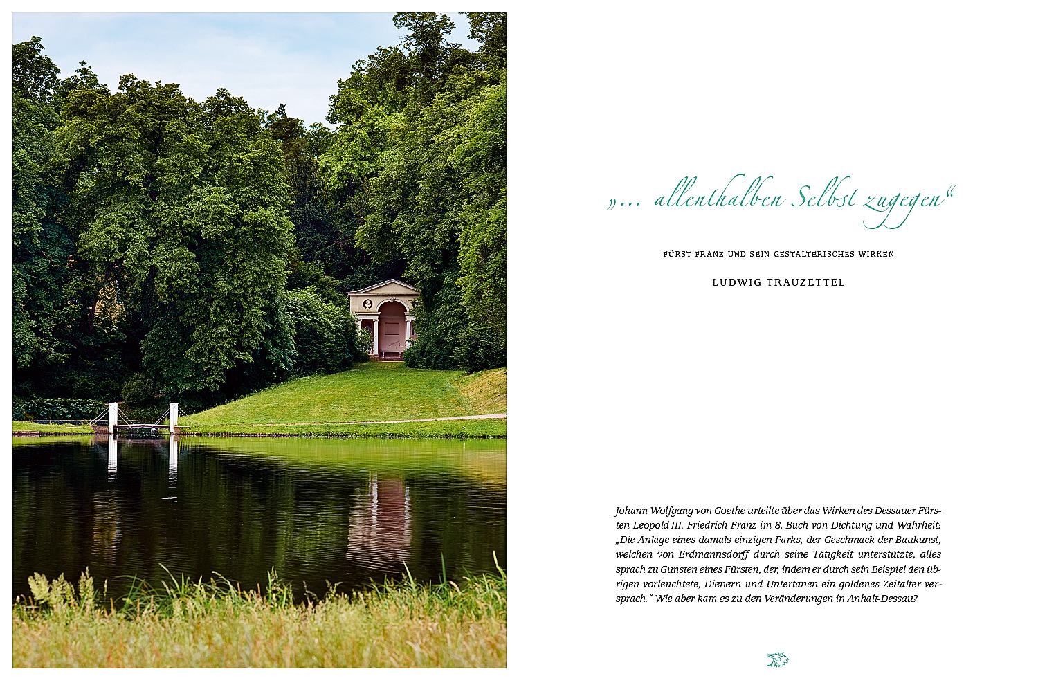 Thomas WeißEin Fest der SinnesfreudeThomas Weiß Vom Genius Loci im Gartenreich Antje Vollmer "Komm in den totgesagten Park und schau" Christoph Stölzl Nonkonformismus in AnhaltGuido Puhlmann Lebensader Elbe. Vielfalt im Fluss der Zeiten Hartmut Kolbe, Eckart Schwarze Über die Vogelwelt Ludwig Trauzettel "...allenthalben Selbst zugegen" Sebastian Doil Kunstvoll und zugleich nützlichChrista Hasselhorst Louises BlumenweltenWolfgang Savelsberg Bildgewordene NaturAnnette Scholtka Lorbeerbaum und PfauenaugeUwe QuilitzschSüße Früchte Uwe QuilitzschZwei faszinierende "Ideenmagazine" für Liebhaber von Gärten Ingo PfeiferEin Tempel für die Flora Hans-Ulrich CainDer römische Hercules mingens Thomas RaffZephyr und die anderen Eckhard FuhrLob der Jagd Ingo SchmidtGaumengenüsse Thomas WeißGenuss ohne Grenzen Autoren Impressum