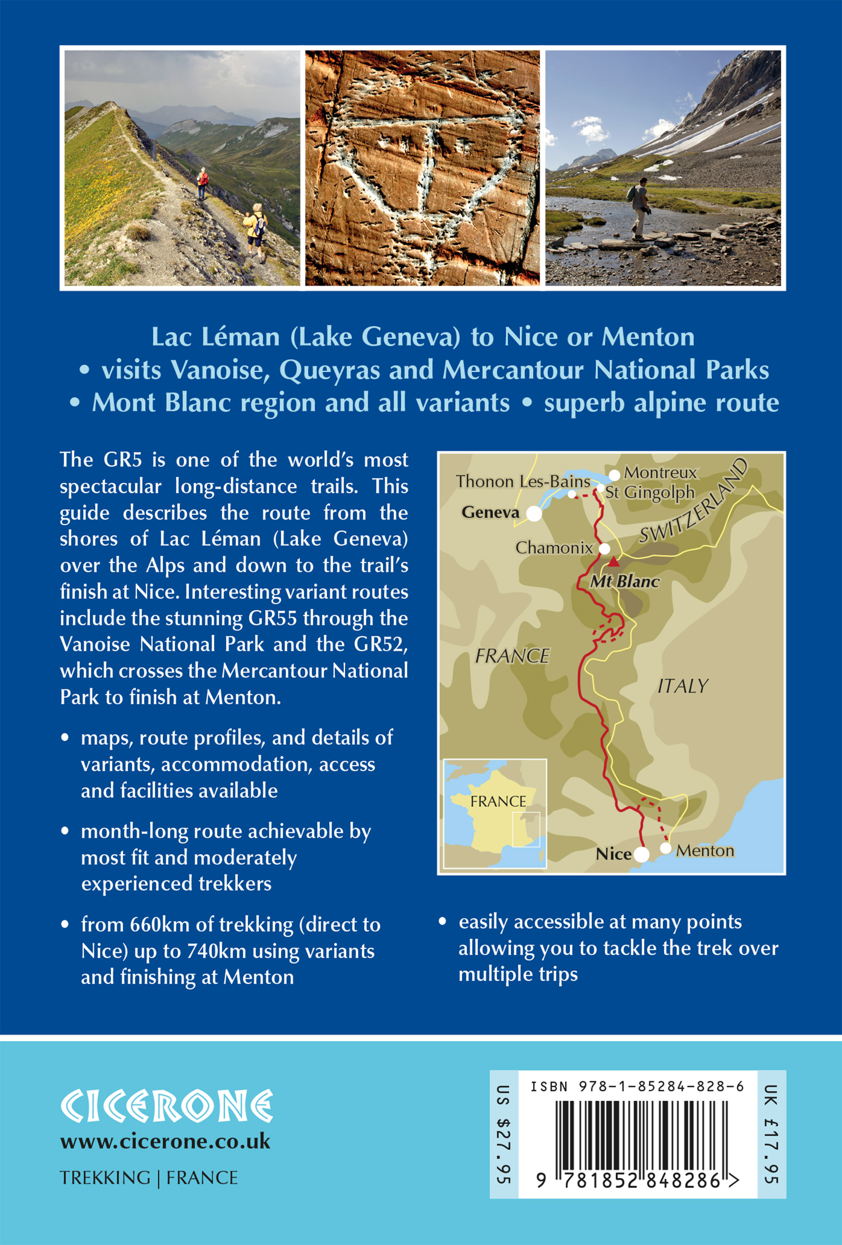 A guidebook to trekking the southern section of the GR5 trail between Lac Leman (Lake Geneva) and either Nice or Menton. Covering 674km (420 miles), this long-distance trek through the French Alps can be walked in 1 month and is suitable for moderately experienced hikers.