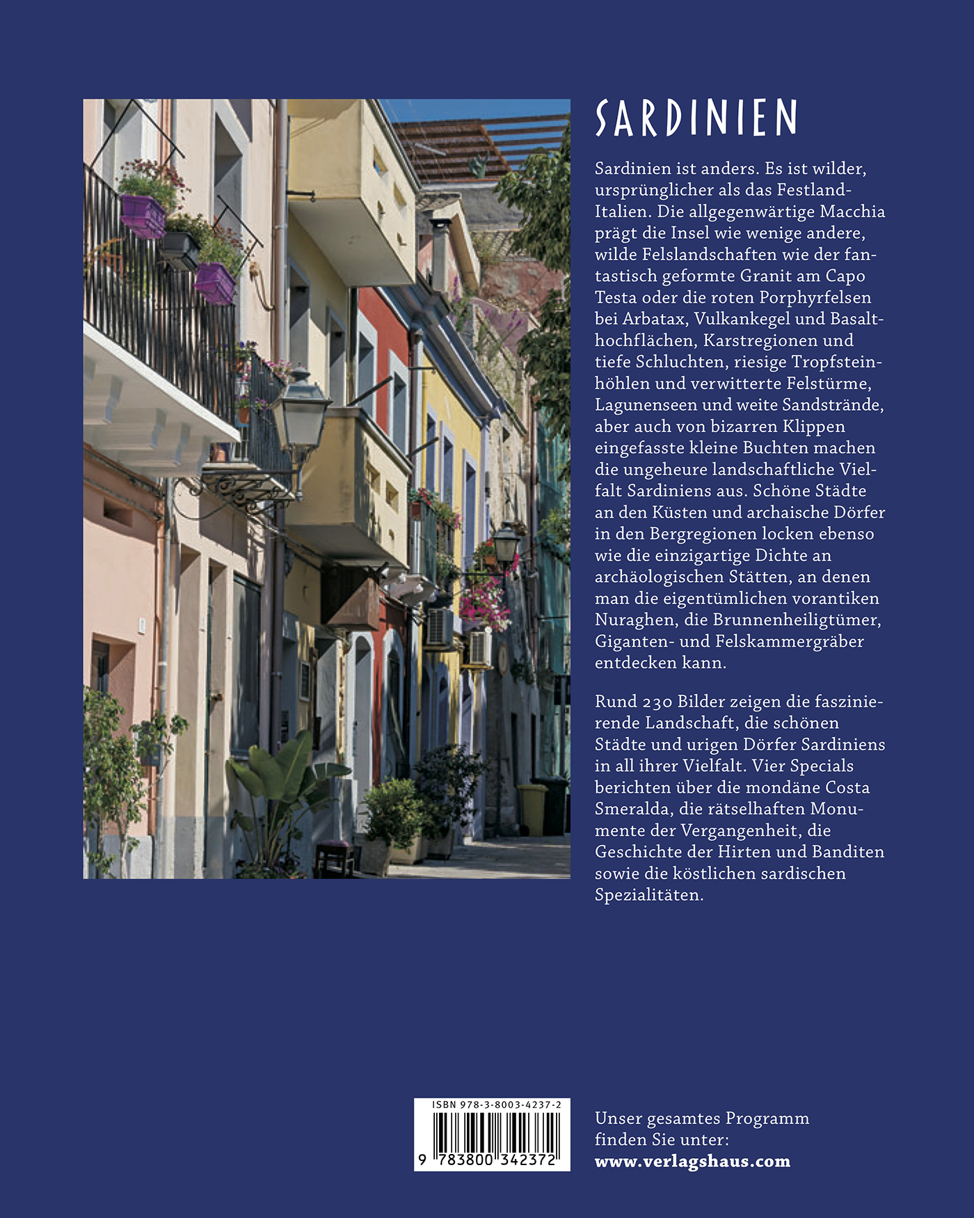 Sardinien gehört zu Italien, ist aber nicht Italien. Die sonnendurchglühten Fels- und Macchialandschaften der zweitgrößten Insel im Mittelmeer faszinieren durch ihren archaischen Charakter. Die Insel der Schafherden, der Korkeichenwälder und der vorantiken Festungstürme namens "Nuraghen" ist ein Kontinent im Kleinen. Von der bizarren Granitszenerie des Capo Testa im Norden zur wüstenhaften Dünenlandschaft der Costa Verde ist es ein weiter Weg, eine Bootsfahrt durchs glasklare Meer entlang der Strände und Höhlen im Golf von Cala Gonone ist ein Muss, ebenso wie eine Tour durch die raue Barbagia, das Land der sardischen "Banditen".