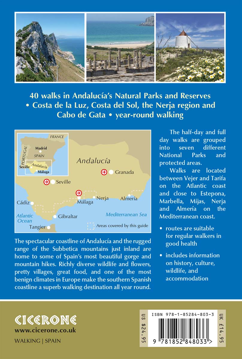A guidebook to 40 coastal walks in Andalucia, Spain. Exploring six natural parks along the Mediterranean and Atlantic coasts, plus La Sierra de Mijas, the routes are graded by difficulty, with options to suit both beginner and experienced walkers.