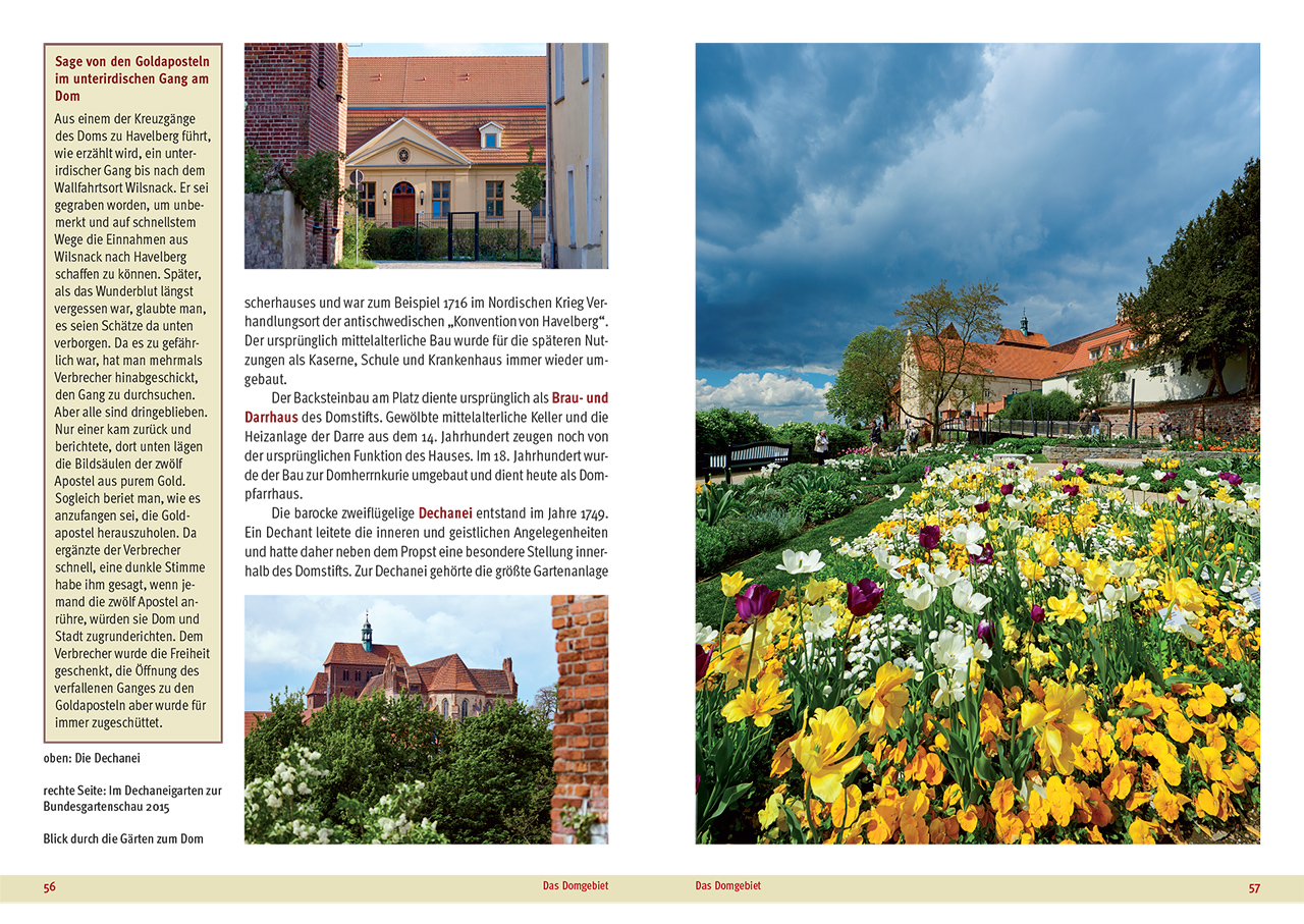 Havelberg, die Insel- und Domstadt im Grünen, ist mit ihren knapp 7000 Einwohnern im Jahr 2015 eine der fünf Gastgeberkommunen der Bundesgartenschau. Die Hansestadt am Zusammenfluss von Havel und Elbe hat als Bischofssitz eine reiche Geschichte. Das historische Zentrum der Stadt im Landkreis Stendal im nördlichen Sachsen-Anhalt befindet sich auf einer Insel in der Havel. Die mehr als tausendjährige Stadt besteht heute aus drei Teilen: der kreisrunden, durch drei Brücken mit dem umliegenden Land verbundenen Altstadtinsel, dem hochgelegenen Domgebiet und den Berggemeinden dazwischen. Seit dem Mittelalter verbindet die nur 250 Meter lange Lange Straße die beiden Stadttore miteinander. Sie ist die längste Straße der Stadtinsel. Das Havelvorland diente über Jahrhunderte als Anlegeufer für die ruhende Schifffahrt. Speicher- und Kontorgebäude standen hier, wovon noch heute der mächtige Backsteinspeicher mit Be- und Entladevorrichtungen vom Anfang des 20. Jahrhunderts zeugt. Die Fischerei war hier ein bedeutender und charakteristischer Wirtschaftszweig. Auch der Havelberger Pferdemarkt hat eine über Jahrhunderte währende Tradition. Der als romanische Basilika von 1150 bis 1170 errichtete markante Dom wurde nach einem Brand 1279 umgebaut und erhielt die gotische Apsis mit den schlanken Fenstern. Im Umkreis des mächtigen Gotteshauses entstanden Klostergebäude und Häuser für Gäste, Handwerker und Menschen, die der Kirche dienten. Sie umgrenzten ihr Reich mit einer schützenden Mauer, die in Teilen noch steht. Das Areal besteht aus drei Flügeln mit Kreuzgängen, die bis um 1300 errichtet wurden, und ist heute eine der wenigen vollständig erhaltenen Klosteranlagen des Mittelalters in Norddeutschland. Eine erste Stadterweiterung gab es um 1830. Betuchte Einwohner bauten sich auf dem Domberg schöne Villen. Havelberg ist nicht nur der Bundesgartenschau wegen eine Reise wert. Dieser neue Stadtführer macht in Wort und Bild vertraut mit der reichen Historie des sehenswerten und touristenfreundlichen Ortes und ist der ideale Begleiter während des Besuches.