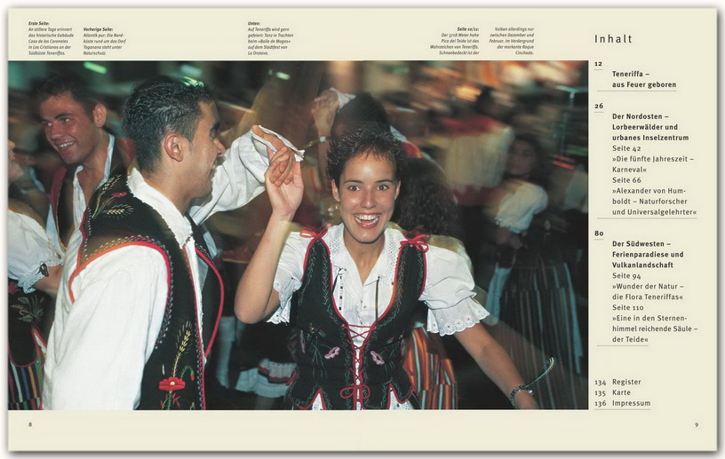 Über 200 Bilder zeigen Teneriffa in seiner ganzen Vielfalt und vier Specials berichten über den gewaltigen Teide, den brodelnden Karneval, die faszinierende Flora und den Aufenthalt des Weltreisenden Alexander von Humboldt auf der Insel.
