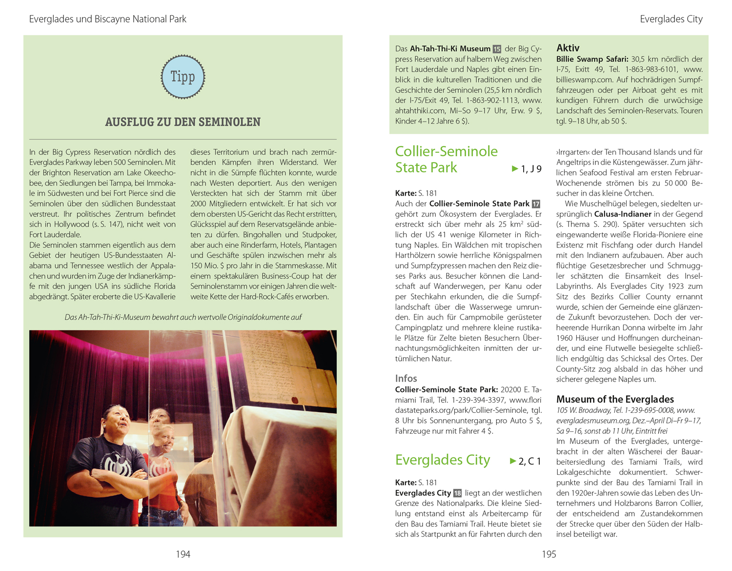 Zu jedem Kapitel präsentiert eine Doppelseite "Auf einen Blick" die Highlights, die schönsten Routen, aktive Naturerlebnisse und besondere Tipps. Ort für Ort hat der Autor ausgesuchte Unterkünfte, Restaurants oder Einkaufsadressen zusammengestellt, die in den Cityplänen eingezeichnet sind. Wanderungen und Bootstouren erschließen die schönsten Landschaften, etwa das Merritt Island National Wildlife Refuge oder den Ocala National Forest. Viel Wissenswertes über Florida - über die Geschichte und Gegenwart oder den Alltag der Menschen - lässt sich in der Landeskunde sowie in den eingestreuten Themenseiten nachlesen.