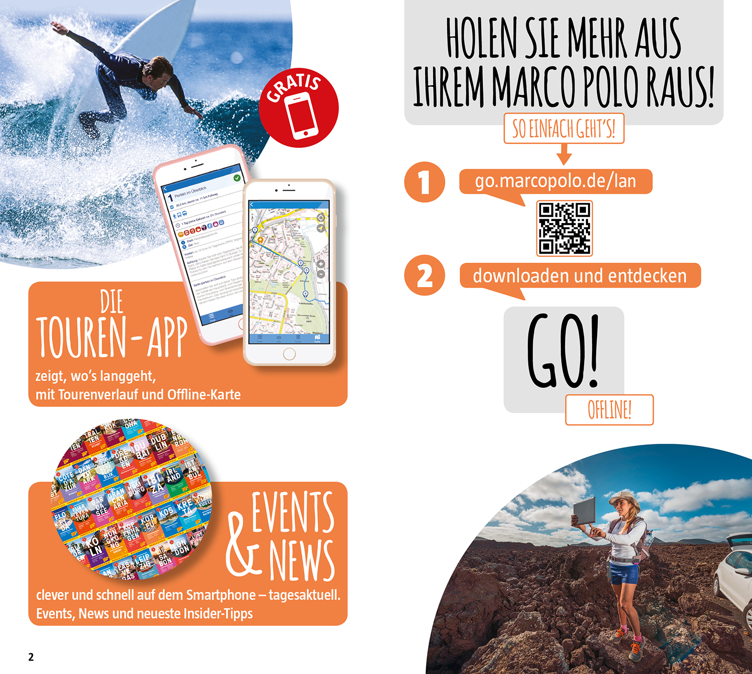 Erkunden Sie Lanzarote in all seinen Facetten mit den maßgeschneiderten MARCO POLO Erlebnistouren. Das speziell dafür entwickelte Design sorgt - schon beim Lesen und umso mehr vor Ort - für größtmögliche Orientierung.