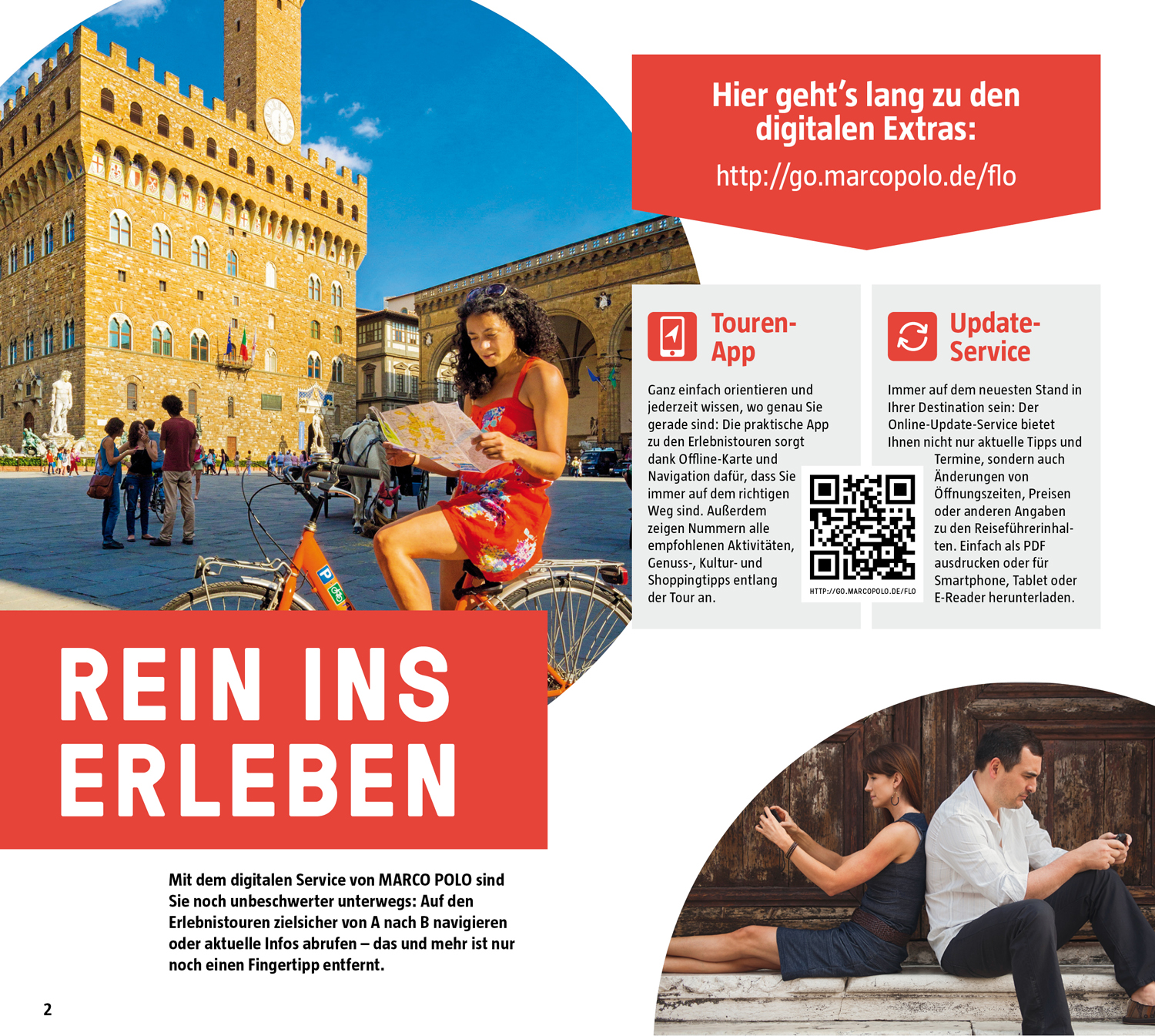 Erleben Sie mit MARCO POLO die toskanische Hauptstadt am Arno intensiv vom Frühstück bis zum Nightcap. Mit dem MARCO POLO Reiseführer kommen Sie sofort in Florenz an und wissen garantiert, „wohin zuerst“.