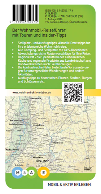 TOP-TEN-TIPPS FÜR IHRE ERLEBNISREISE MIT DEM WOHNMOBIL1. Älteste und längste Weinstraße Deutschlands: Schon 1954 wurde die Badische Weinstraße zwischen Weil am Rhein und Baden-Baden eröffnet. 2014 wurde sie bis ins liebliche Taubertal erweitert.2. Kultureller und kulinarischer Genuss: Die Römer prägten den Oberrhein und südlich des Limes. Sie wussten zu genießen. So wird der Weinbau in Baden schon 2.000 Jahre betrieben, die Küche bietet noch heute südliche Elemente. Und die römische Badekultur hat sich vielerorts erhalten. 3. Historische Altstädte: Ob Gernsbach, Rastatt, Schwetzingen, Heidelberg, Eppingen oder Wertheim und viele Orte mehr: Tauchen Sie beim Rundgang ins Mittelalter ein.4. Burgen und Schlösser: Wie Perlen an einer Kette finden Sie diese entlang der Badischen Weinstraße. Sie bieten Ihnen einen grandiosen Blick über die Landschaft. Oder genießen Sie den Spaziergang durch traumhafte Gärten.5. Ortenau: Die Vorbergzone des Schwarzwalds bietet fast mediterranes Klima. Von der Gebirgskulisse des Schwarzwalds eröffnet sich eine atemberaubende Aussicht über die Rheinebene.6. Kraichgau - Land der 1.000 Hügel. Das milde Klima und die Hügellandschaft verleihen dieser Region fast mediterranes Flair.7. Badische Bergstraße: Die Bergstraße liegt traumhaft schön zwischen der Bergkette des Odenwalds mit Burgen auf den Gipfeln. Nach Westen öffnet sich das Land bis in die Pfalz.8. Liebliches Taubertal: Tauchen Sie im idyllischen Flusstal in vergangene Zeiten mit Burgen, Schlössern und Klöstern ein. Die Burg Wertheim, das Schloss Weikersheim und das Kloster Bronnbach sind nur einige Beispiele.9. Radeln oder Wandern: Das Wandern ist die genuss-vollste Art, um Land und Leute zu erleben. Bei der Besichtigung der Sehenswürdigkeiten und beim Naturerlebnis ist auch das Fahrrad ein treuer Diener.10. Stellplätze und Campingplätze. Dieses Buch gibt zahlreiche Tipps zum Verweilen, um all das zu genießen.