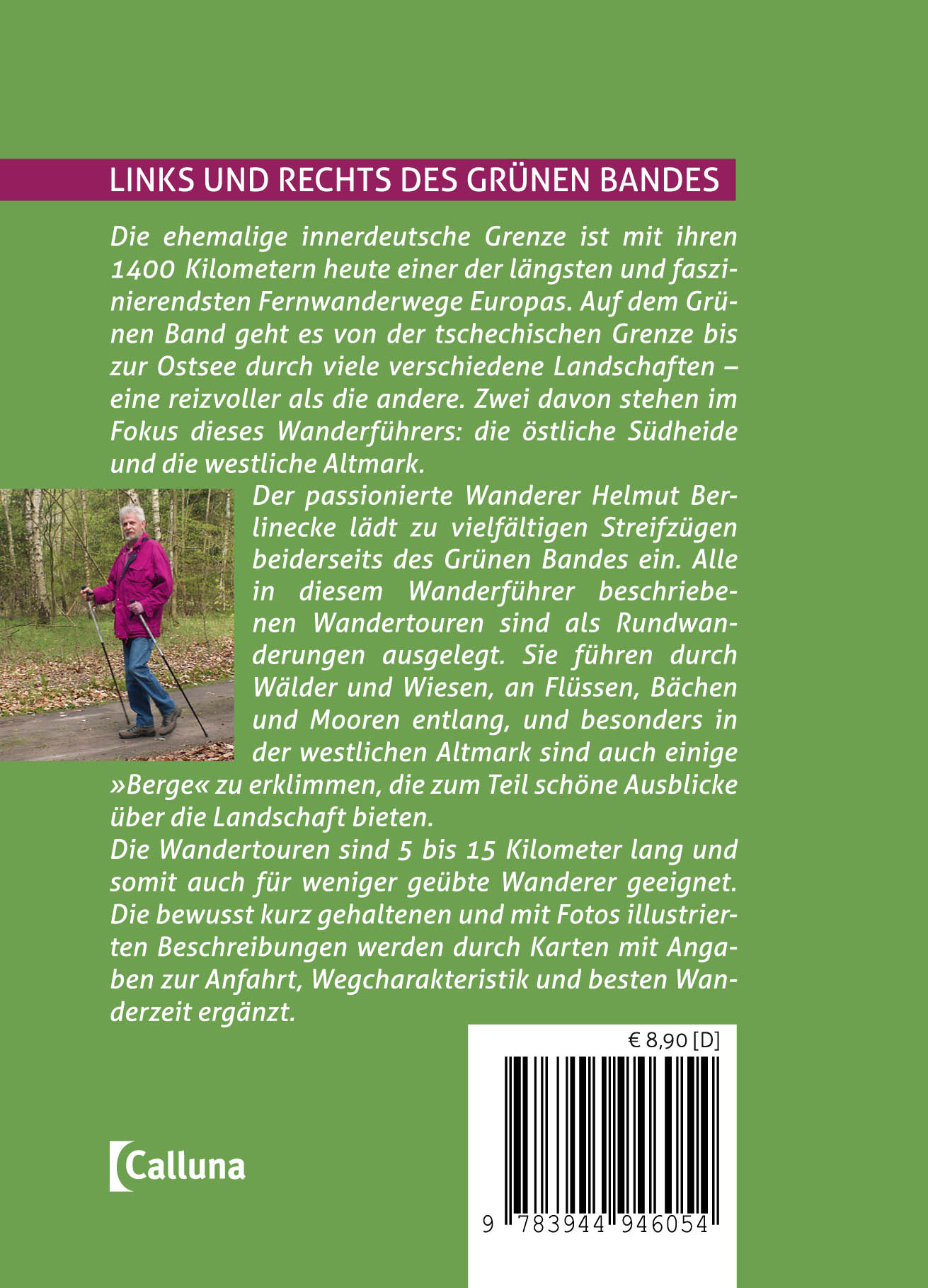 Der passionierte Wanderer Helmut Berlinecke lädt zu vielfältigen Streifzügen beiderseits des Grünen Bandes ein. Alle in diesem Wanderführer beschriebenen Wandertouren sind als Rundwanderungen ausgelegt. Sie führen durch Wälder und Wiesen, an Flüssen, Bächen und Mooren entlang, und besonders in der westlichen Altmark sind auch einige »Berge« zu erklimmen, die zum Teil schöne Ausblicke über die Landschaft bieten.