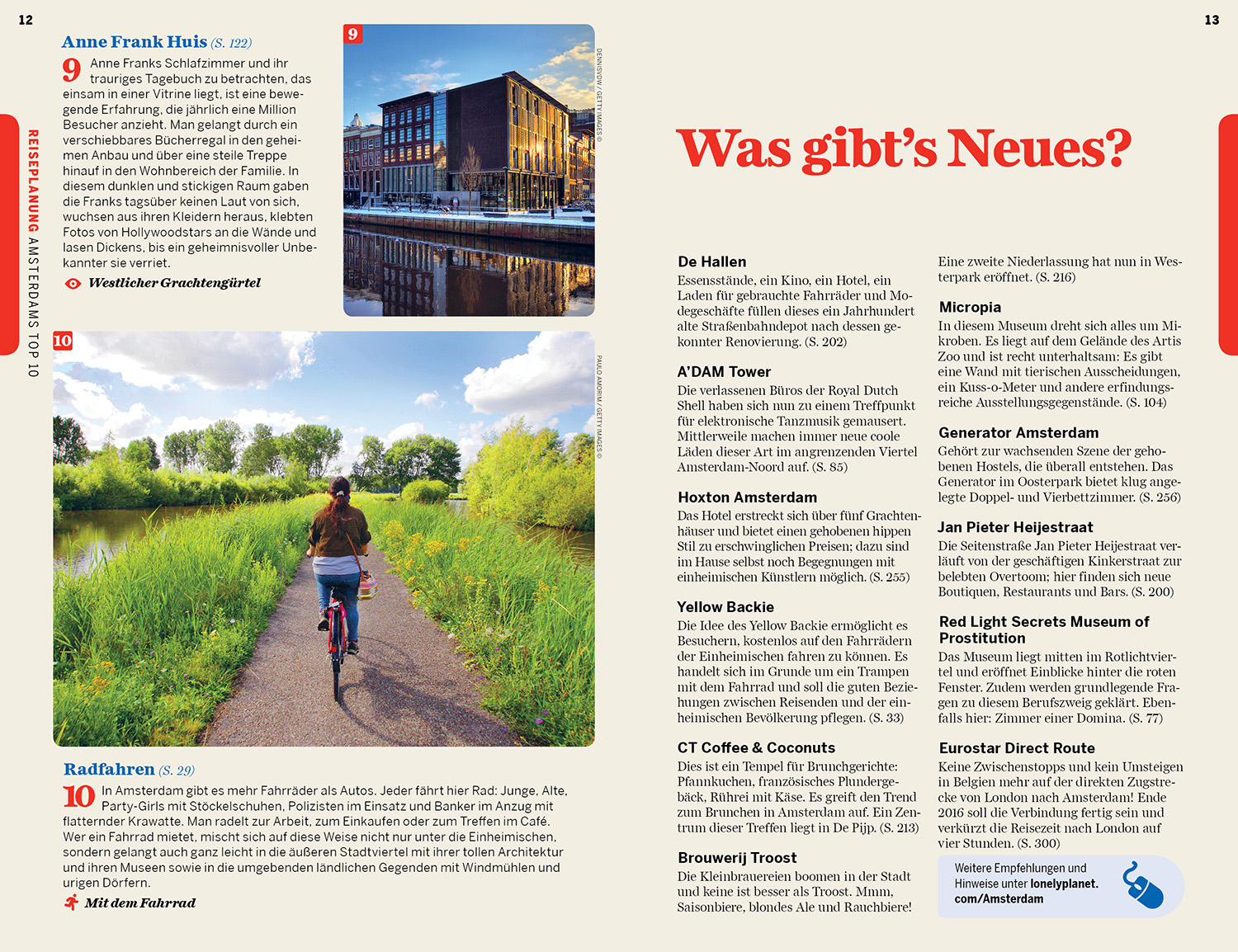 Mit dem Lonely Planet Amsterdam auf eigene Faust durch die sympathische Grachtenmetropole! Etliche Monate Recherche stecken im Kultreiseführer für Individualreisende. Auf mehr als 300 Seiten geben die Autoren sachkundige Hintergrundinfos zum Reiseland, liefern Tipps und Infos für die Planung der Reise, beschreiben alle interessanten Sehenswürdigkeiten mit aktuellen Öffnungszeiten und Preisen und präsentieren ihre persönlichen Entdeckungen und Tipps. Auch Globetrotter, die abseits der ausgetretenen Touristenpfade unterwegs sein möchten, kommen auf ihre Kosten. Wie wäre es beispielsweise mit einem Bummel über den berühmtesten Flohmarkt der Stadt? Auf dem Waterlooplein Flohmarkt stapeln sich Kuriositäten, New- Age-Nippes und Fahrradteile für Schnäppchenjäger. Oder lieber eine Runde übers Eis drehen? Im Winter verwandelt sich der Teich auf dem Museumplein zu Amsterdams beliebtester Eisbahn? Und wie wäre ein Besuch in einem der vielen schrägen Museen, wie z. B.: dem Tassenmuseum? Wo unterwegs übernachten und essen? Für jedes Stadtviertel gibt es eine Auswahl an Unterkünften und Restaurants für jeden Geschmack und Geldbeutel. Abgerundet wird der Guide durch Übersichts- und Detailkarten, ein praktischer Cityplan im Hosentaschenformat zum Heraustrennen, ein Farbkapitel zu den 10 Top-Highlights, Extra-Kapitel zu den Themen Ausgehen, Shoppen und Szene, Themen-Kapitel "Tagesausflüge" und "Schlafen" sowie Glossar und - damit Sie gut verständlich ankommen - einen Sprachführer. Der Lonely-Planet-Reiseführer Amsterdam ist ehrlich, praktisch, witzig geschrieben und liefert inspirierende Eindrücke und Erfahrungen.