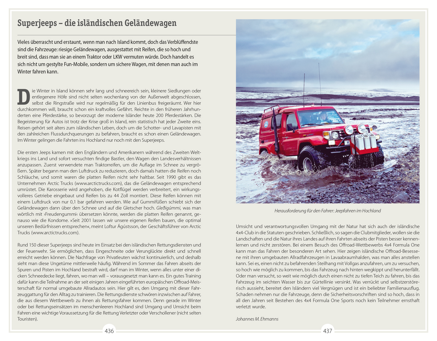 Von Reykjavík, Reykjanes und dem Goldenen Kreis bis ins Hochland werden alle sehenswerten Regionen und Städte beschrieben. Zu jedem Kapitel präsentiert eine Doppelseite "Auf einen Blick" die Highlights, die schönsten Routen, aktive Naturerlebnisse und besondere Tipps der Autorin. Ort für Ort hat Sabine Barth ausgesuchte Unterkünfte, Restaurants oder Einkaufsadressen zusammengestellt, die in den Cityplänen eingezeichnet sind. Wanderungen führen zu den schönsten Aussichtspunkten, etwa auf den Reykjavíker Hausbergs Esja oder zum meerumtosten Leuchtturm Fontur am östlichsten Ende der Halbinsel Langanes. Viel Wissenswertes über Island, über die Geschichte und Gegenwart oder den Alltag der Menschen, lässt sich in der einführenden Landeskunde wie in den eingestreuten Themenseiten nachlesen.