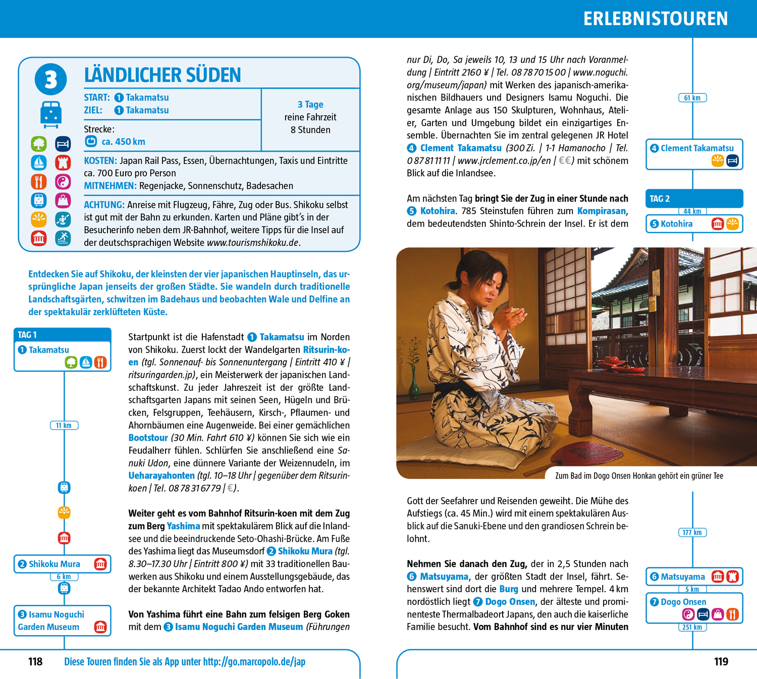 Kompakte Informationen, Insider-Tipps, Erlebnistouren und digitale Extras: Entdecken Sie mit MARCO POLO Japan intensiv von der Millionenmetropole Tokio bis zu den Tropenstränden auf Okinawa - mit dem MARCO POLO Reiseführer kommen Sie sofort in Japan an. Erfahren Sie, welche Highlights Sie neben dem heiligen Gipfel des Fuji und dem Friedenspark in Hiroshima nicht verpassen dürfen, wie Sie den früheren Geisha-Distrikt der legendären Kaiserresidenz Kyoto auf einer zweistündigen Tour erleben und wo Sie auch als Otto Normalverdiener einmal das edle Kobe Beef zu moderaten Preisen probieren können. Die Insider-Tipps der Autoren lassen Sie Japan individuell und authentisch erleben und mit den Low-Budget-Tipps sparen Sie bares Geld. Erkunden Sie Japan in all seinen Facetten mit den maßgeschneiderten MARCO POLO Erlebnistouren. Das speziell dafür entwickelte Design sorgt - schon beim Lesen und umso mehr vor Ort - für größtmögliche Orientierung. Die kostenlose Touren-App führt Sie digital (und ohne Roaminggebühren) auf den besonderen Wegen der Erlebnistouren.