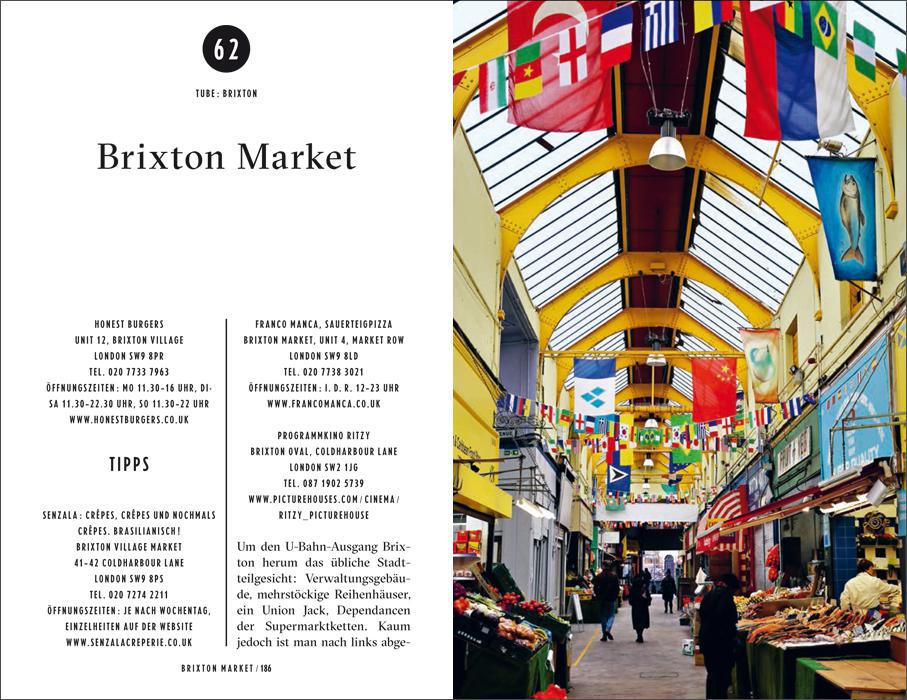 Zum Beispiel so: Beginnen Sie den Tag mit einem Morgenspaziergang an der Themse, vorbei an Westminster Abbey. Anschließend geht es in Soane's Museum, wo Sir John, Architekt und Exzentriker, seine in aller Welt gesammelten Kunstschätze präsentiert. Von dort schlendert man durch das London der Juristen mit seinen Höfen und seiner Stille und taucht in Charles Dickens' Wohnhaus in 48, Doughty Street in das viktorianische Leben ein. Von hier kann man ein typisches Londoner Village entdecken, East Bloomsbury. Der Hunger wird im Pub The Lamb gestillt, wo Ted Hughes und Sylvia Plath Stammgäste waren. »Treiben lassen«, flüstert die Stadt, in der National Portrait Gallery studiert man Gesichter und fährt in den obersten Stock, um in der Bar Londons Skyline auf sich wirken zu lassen. Wird es dunkel, springen zahllose Lichter an, Covent Garden, ein überbauter Markt mit Geschäften und Restaurants, spielt Oper mitten in der Stadt.