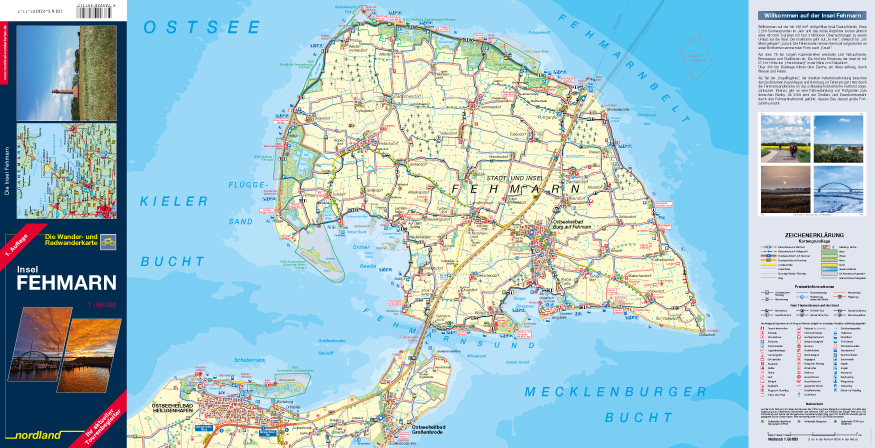 Wander- und Radwanderkarte der Insel Fehmarn im Maßstab 1:50000.Mit Ortsplan von Burg und Inselführer in Wort und Bild.