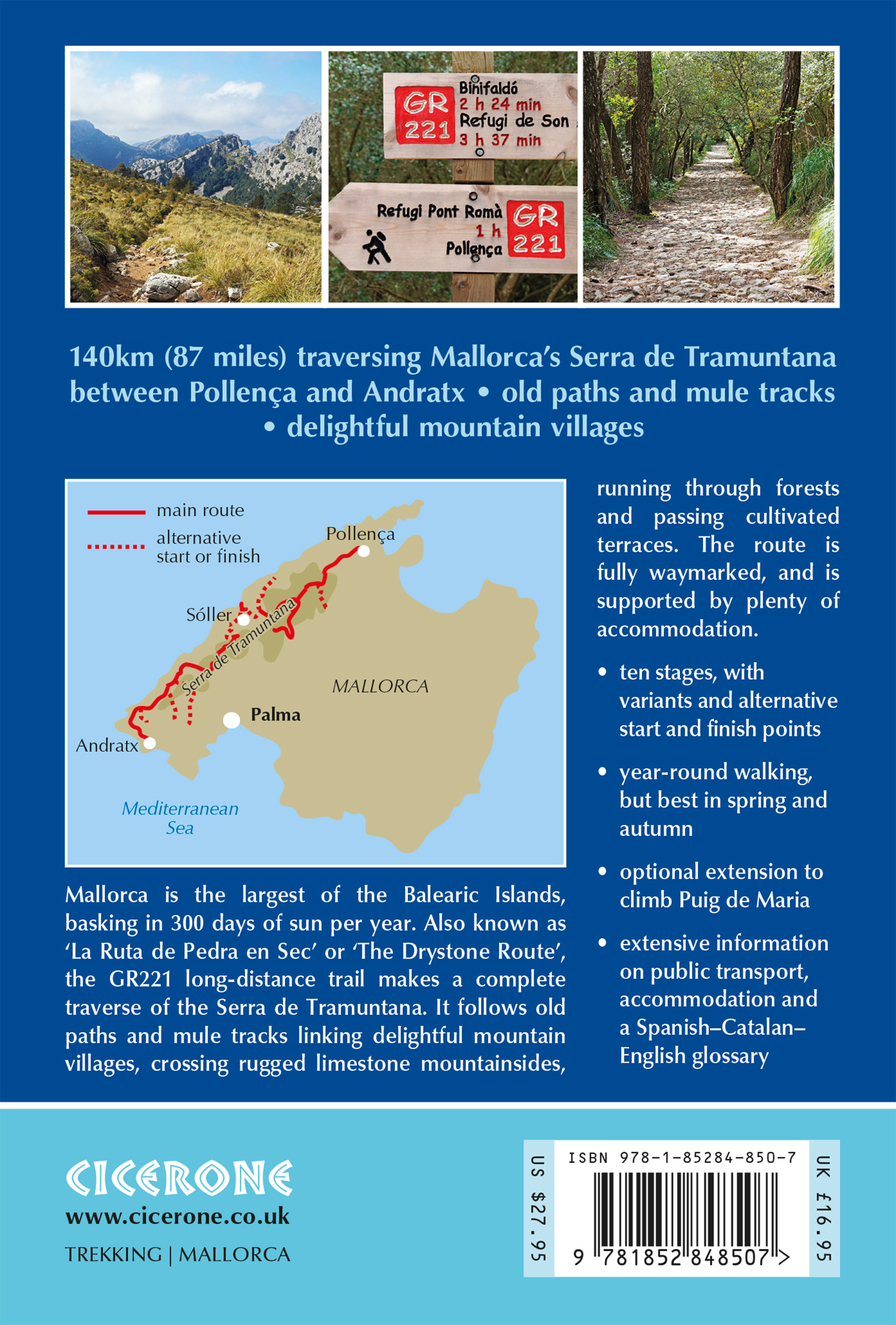 A guidebook to trekking the GR221 – also known as the Drystone Route – through the spectacular mountains of Mallorca’s Serra de Tramuntana. Best suited to those with some experience of long-distance walking, the route is mostly on clear paths and tracks, but some of these can be rough underfoot, and occasionally steep, and some sections require careful route-finding.