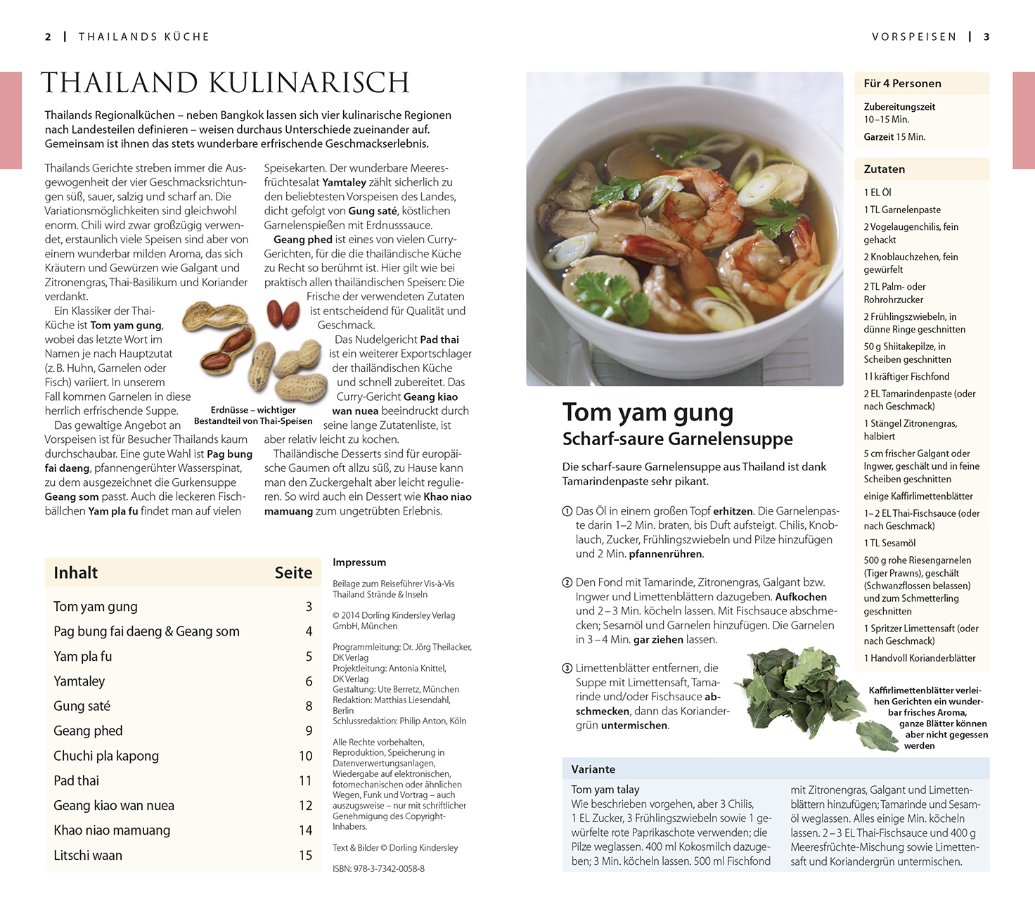 Von der östlichen bis zur westlichen Golfküste, von der Andamanen-Küste bis in den Süden - in den Küstenregionen Thailands lassen sich zahlreiche Strände, Sehenswürdigkeiten und Märkte entdecken! Auch die Metropole Bangkok mit über 14 Millionen Einwohnern zieht zahlreiche Besucher an. Im Vis-à-Vis Thailand - Strände & Inseln finden Sie für jedes Vorhaben alle Informationen, die Sie benötigen: vom geeigneten Tauchrevier an der Golfküste über das Öko-Resort an der Ostküste bis zum traditionellen Restaurant an der oberen Andamanen-Küste. Dank detailliertem Stadtplan und Aufrisszeichnungen von Sehenswürdigkeiten wie Wat Pho, Bangkoks ältestem Tempel, finden Sie sich in Bangkok mühelos zurecht. Der Bade-, Tauch- oder Wellness-Urlaub wird durch viele praktische Hinweise zum vollen Erfolg. Außerdem gibt es besondere Informationen zu exotischen Früchten wie Litschis, Mangostinen, Papayas und Kokosnüssen. Erstmalig bei einem Reiseführer gibt es ein Mini-Kochbuch zum Herausnehmen mit typischen Gerichten des Landes. Die hervorragenden Abbildungen - exakte Schnittzeichnungen, dreidimensionale Grundrisse, Übersichtskarten und Stadtpläne - erleichtern Ihnen die Orientierung vor Ort. Der ausführliche Praxisteil bietet aktuelle Angaben zu Hotels, Restaurants, Shopping, Nachtleben und Unterhaltung sowie praktische Tipps zu Verkehrsmitteln, Öffnungszeiten und vieles mehr.