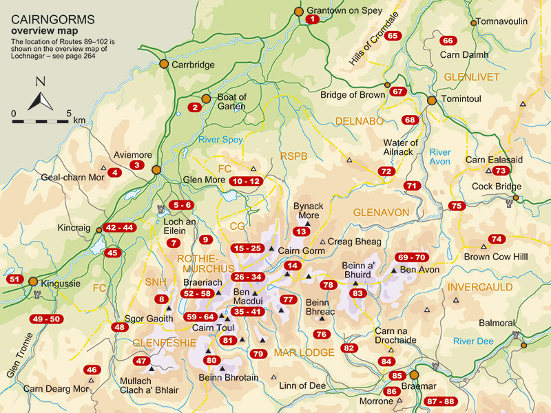 Multiple summit path options are included for five hills – Macdui, Cairn Gorm, Braeriach, Cairn Toul and Lochnagar