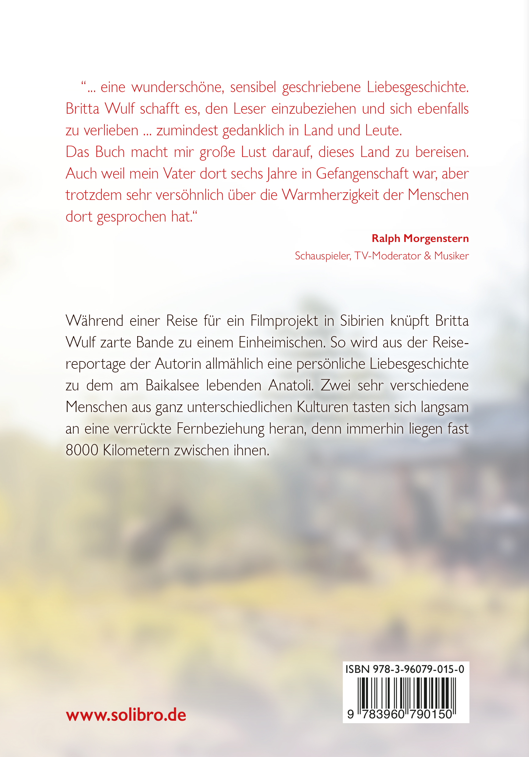 "... eine wunderschöne, sensibel geschriebene Liebesgeschichte. Britta Wulf schafft es, den Leser einzubeziehen und sich ebenfalls zu verlieben ... zumindest gedanklich in Land und Leute. Das Buch macht mir große Lust darauf, dieses Land zu bereisen. Auch weil mein Vater dort sechs Jahre in Gefangenschaft war, aber trotzdem sehr versöhnlich über die Warmherzigkeit der Menschen dort gesprochen hat."Ralph Morgenstern (Schauspieler, TV-Moderator & Musiker)Während einer Reise für ein Filmprojekt in Sibirien knüpft Britta Wulf zarte Bande zu einem Einheimischen. So wird aus der Reisereportage der Autorin allmählich eine persönliche Liebesgeschichte zu dem am Baikalsee lebenden Anatoli. Zwei sehr verschiedene Menschen aus ganz unterschiedlichen Kulturen tasten sich langsam an eine verrückte Fernbeziehung heran, denn immerhin liegen fast 8000 Kilometern zwischen ihnen.Im Nachfolgeband »Und der Schamane lacht. Verliebt in Sibirien« erfährt man, wie die Geschichte weitergeht ...