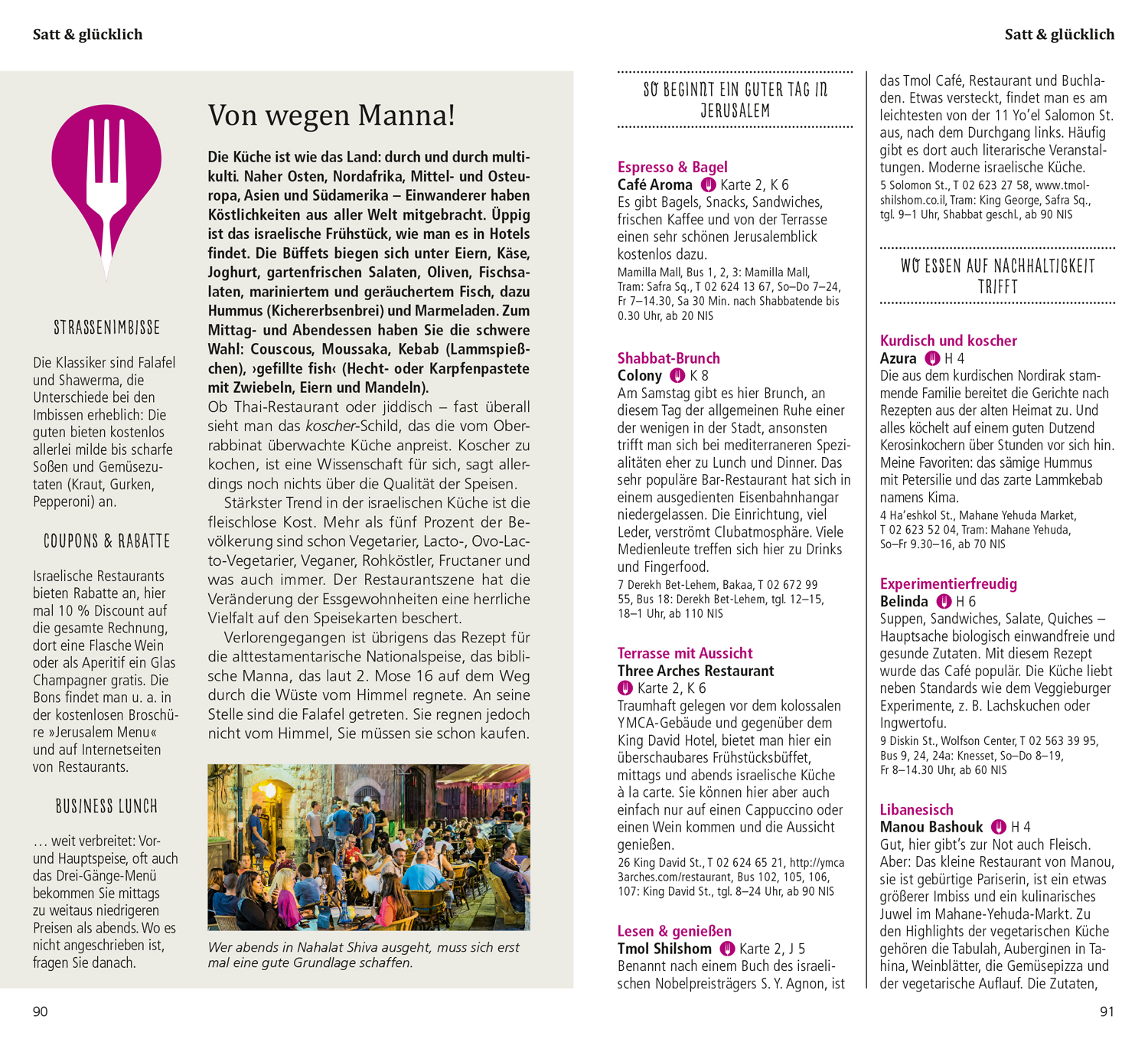 Das Beste zu Beginn. Das ist Jerusalem. Jerusalem in Zahlen. Was ist wo? Augenblicke. Ihr Jerusalem-Kompass. 15 Direktkapitel. Jerusalemer Museumslandschaft. Jerusalem künstlerisch. Jerusalem sakral. Pause – einfach mal abschalten. In fremden Betten. Satt & glücklich. Stöbern & entdecken. Wenn die Nacht beginnt. Hin & weg. O-Ton Jerusalem. Kennen Sie die?