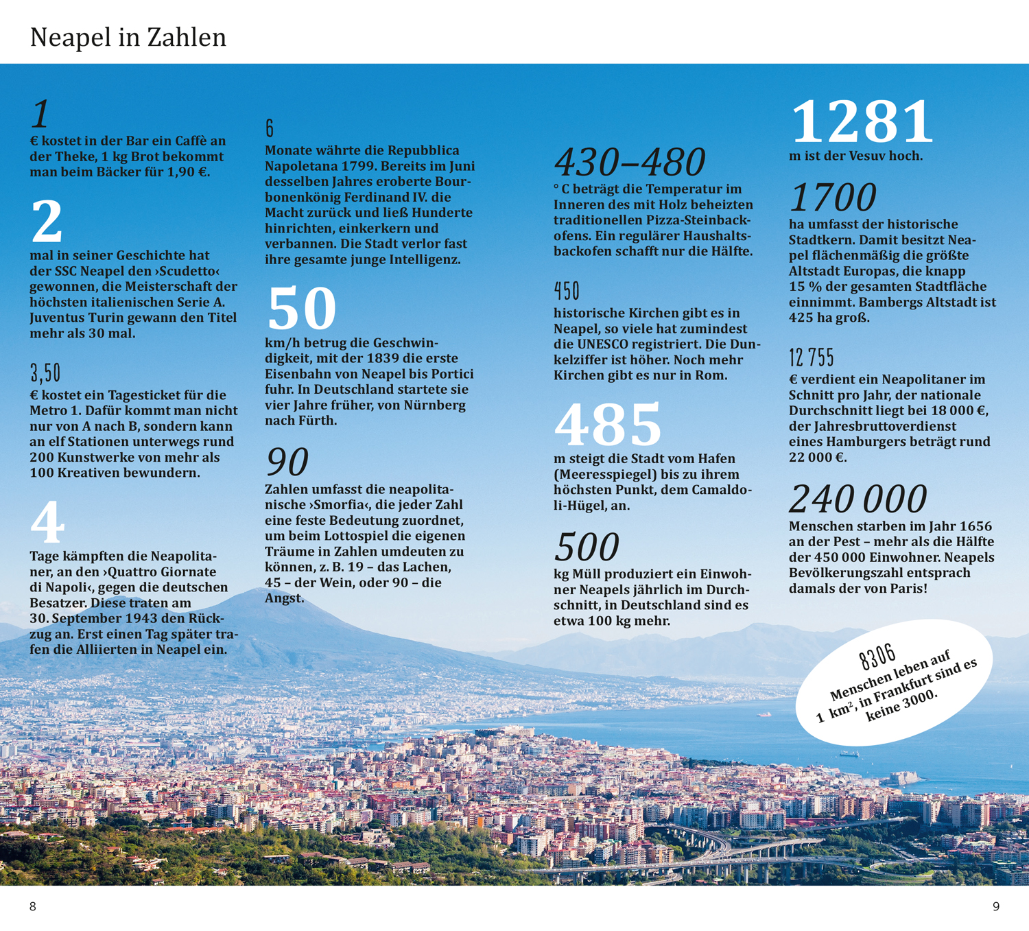 Das Beste zu Beginn. Das ist Neapel. Neapel in Zahlen. Was ist wo? Augenblicke. Ihr Neapel-Kompass. 15 Direktkapitel. Neapels Museumslandschaft. Auf der Bühne des Lebens. Seelenheil – oben und unten. Pause – einfach mal abschalten. In fremden Betten. Satt & glücklich. Stöbern & entdecken. Wenn die Nacht beginnt. Hin & weg. O-Ton Neapel. Kennen Sie die?