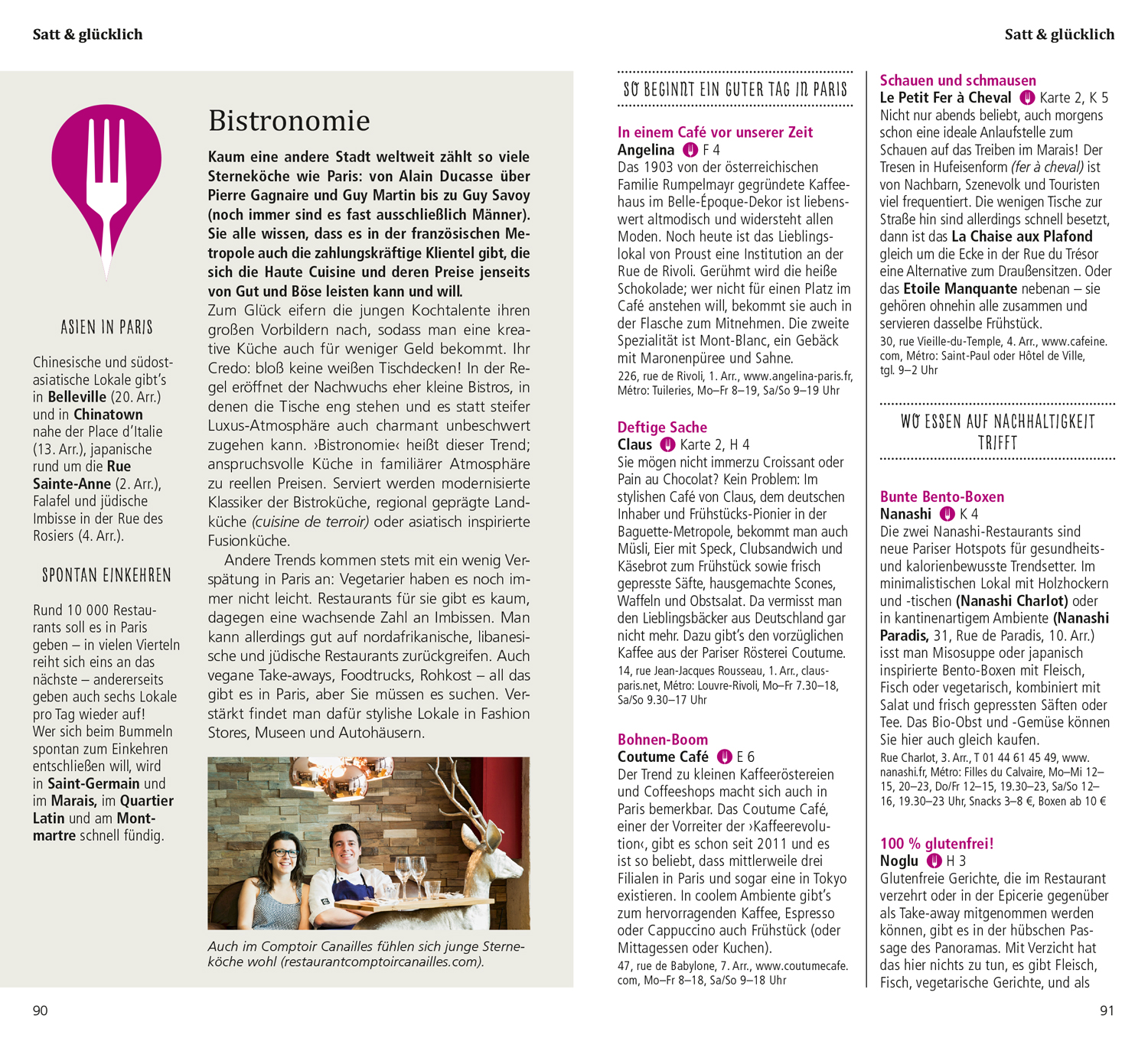 Das Beste zu Beginn. Das ist Paris. Paris in Zahlen. Was ist wo? Augenblicke. Ihr Paris-Kompass: 15 Direktkapitel. Pariser Museumslandschaft. Noch mehr Kunst. Aus Paris wird Grand Paris. Das royale Paris – Versailles. Pause – einfach mal abschalten. In fremden Betten. Satt & glücklich. Stöbern & entdecken. Wenn die Nacht beginnt. Hin & weg. O-Ton Paris. Kennen Sie die?
