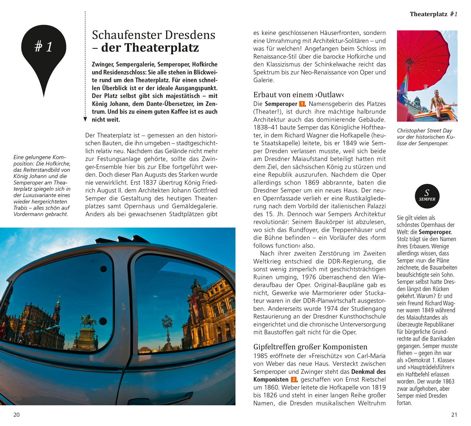 Das Beste zu Beginn. Das ist Dresden. Dresden in Zahlen. Was ist wo? Augenblicke. Ihr Dresden-Kompass. 15 Direktkapitel. Dresdner Museumslandschaft. Dresden hat Landschaft!. Pause - einfach mal abschalten. In fremden Betten. Satt & glücklich. Stöbern & entdecken. Wenn die Nacht beginnt. Hin& weg. O-Ton Dresden. Kennen Sie die?
