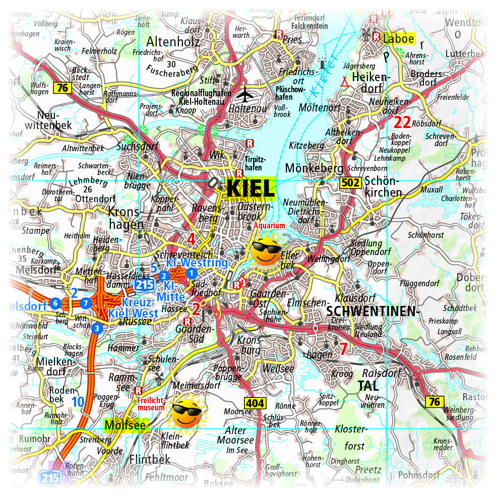 Straßen- und Freizeitkarte für Schleswig-Holstein mit touristischen Straßen, Highlights der Region und Reisemobilstellplätzen. Schnelle Orientierung durch das übersichtliche Straßennetz. In bewährter PUBLICPRESS-Qualität: wetterfest, reißfest, beschrift- und abwischbar.