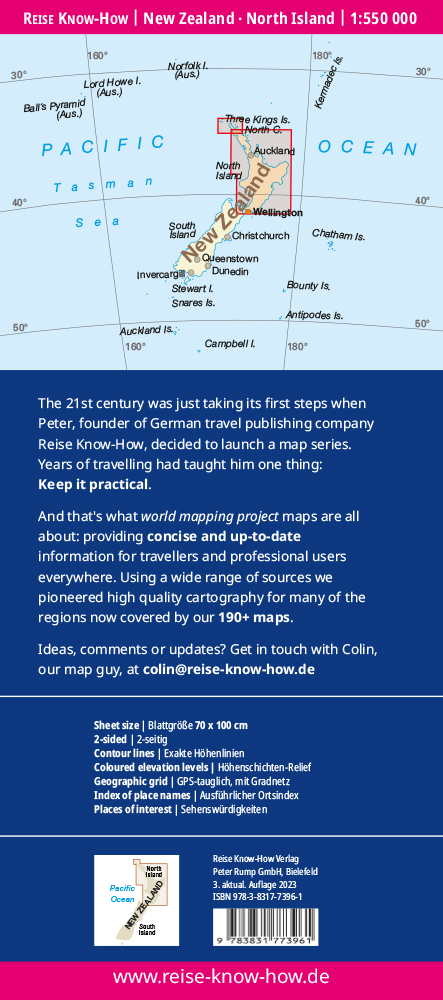 Reise Know-How Landkarte Neuseeland, Nordinsel / New Zealand, North Island (1:550.000)
