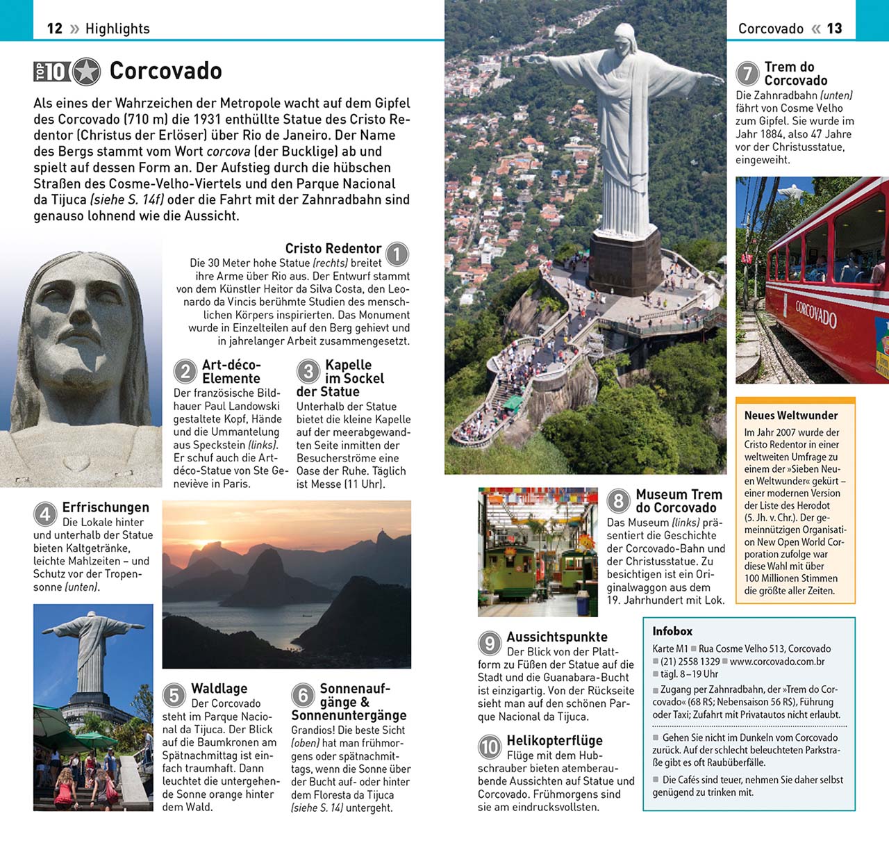 Sie sind nur kurz in der Stadt, wollen aber nichts verpassen? Dann sind Sie in der Rubrik ""Rio de Janeiros Highlights"" genau richtig. Hier werden Sie auf direktem Weg zu den zehn Highlights dieser beeindruckenden Stadt geführt, die jeweils auf einer Doppelseite ausführlich vorgestellt werden: vom Zuckerhut über den Jardim Botânico bis zu den Stränden von Ipanema & Leblon. Für diejenigen, die nur für zwei oder vier Tage in Rio de Janeiro sind und die Zeit optimal nutzen wollen, bieten die Tagestouren-Vorschläge eine hilfreiche Grundlage für Ihre Reiseplanung. Die Touren sind zudem auf einer übersichtlichen Karte eingezeichnet.