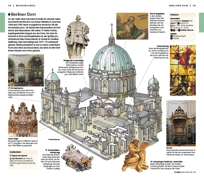Ein Spaziergang zur Pfaueninsel oder doch lieber ein Ausflug nach Potsdam? Für alle Unternehmungen gibt es in diesem Buch die nötigen Informationen. Dank umfangreichem Stadtplan und gezeichneten Spaziergängen finden Sie sich in der deutschen Hauptstadt mühelos zurecht. Viele wichtige Sehenswürdigkeiten wie der Berliner Dom oder die Kaiser-Wilhelm-Gedächtniskirche werden anhand von detaillierten 3D-Zeichnungen und anschaulichen Farbfotos vorgestellt und ausführlich beschrieben.