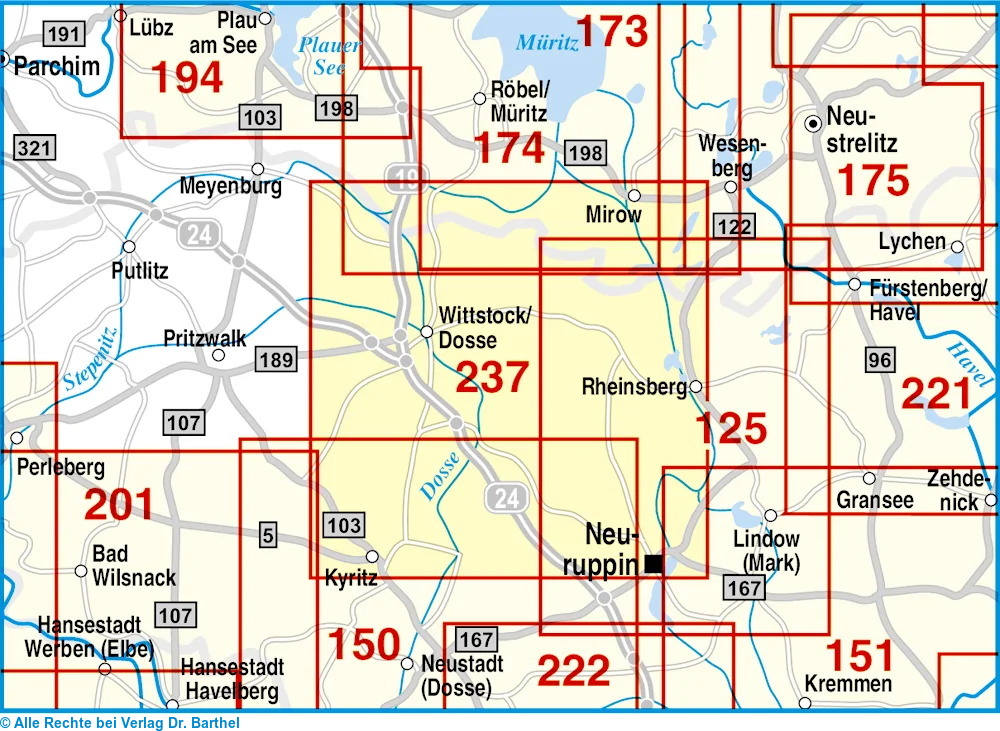 | Schlagworte | Deutschland • Kloster Heiligengrabe • Kyritzer Seenkette • Kyritz (Umgebung), Karte; Radkarte • Kyritz (Umgebung), Karte; Wanderkarte • Landkarten und Atlanten • Mecklenburgische Seen • Naturpark Stechlin-Ruppiner Land • Neuruppin (Umgebung), Karte; Radkarte • Neuruppin (Umgebung), Karte; Wanderkarte • Ruppiner Schweiz • Schloss Rheinsberg |