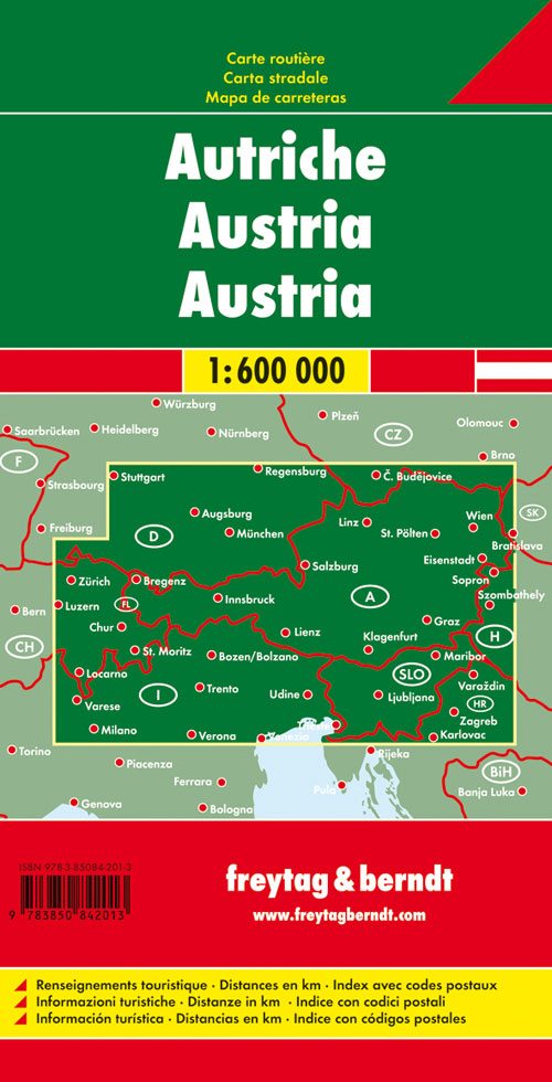 freytag & berndt Autokarten sind für viele Länder und Regionen weltweit erhältlich. Neben der übersichtlichen Gestaltung verfügen die Straßenkarten über zahlreiche Zusatzinformationen wie z.B. Straßenbeschaffenheit, Sehenswürdigkeiten, Campingplätze und diverse Innenstadtpläne. Mit dem umfangreichen Ortsregister gelingt zudem eine rasche Orientierung. Touristische Informationen, Entfernungen in km, Ortsregister mit Postleitzahlen;