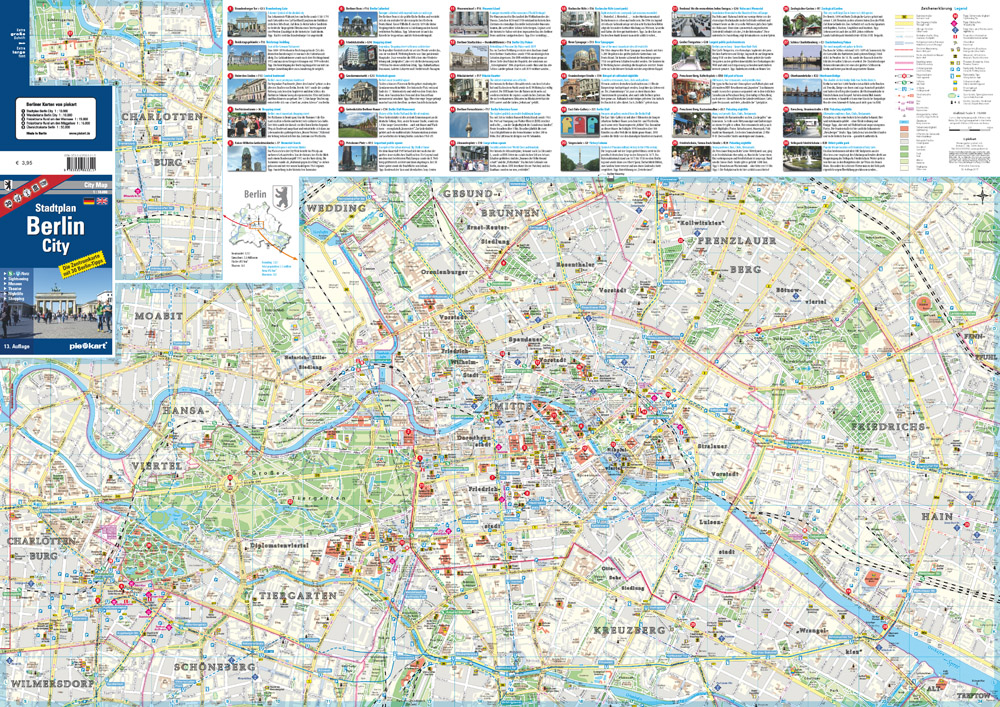 Der gut lesbare Stadtplan im Maßstab 1 : 10.000 stellt das Berliner Zentrum zwischen Charlottenburg und Friedrichshain in allen Einzelheiten dar. In dieser Karte finden Sie wirklich alle Straßen und Wege, aber auch Museen, Theater, Kinos, Biergärten, Bus-, Tram-, S- und U-Bahnlinien. Und damit Sie nichts verpassen, werden die 30 wichtigsten Berlin-Highlights vorgestellt. Für den Überblick sorgt der gesamtberliner S- und U-Bahn-Plan auf der Kartenrückseite. Ebenfalls auf der Rückseite finden Sie alle Straßen und Kultureinrichtungen im klassischen Registerformat.