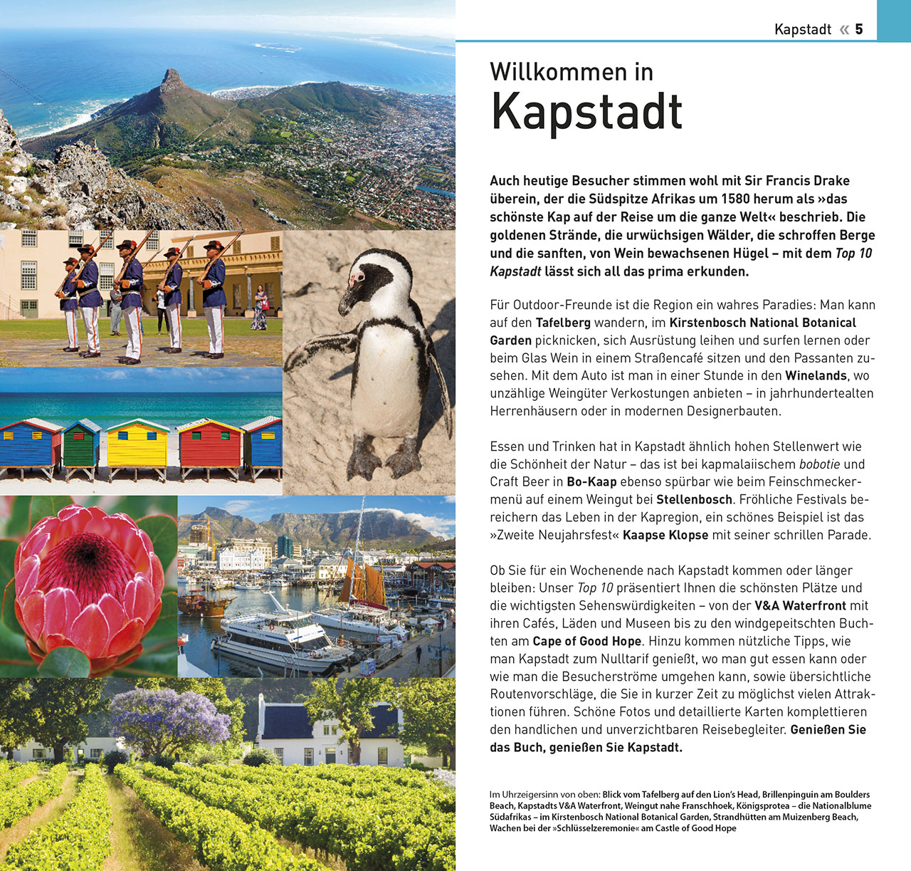 HighlightsWillkommen in KapstadtKapstadt entdeckenHighlightsCompany's GardenV&A Waterfront & Robben IslandDistrict Six MuseumCastle of Good HopeTafelbergKirstenbosch National Botanical GardenGroot ConstantiaSimon's Town & Boulders BeachCape of Good HopeStellenboschThemenHistorische EreignisseSüdafrikanische KulturParks & NaturschutzgebieteBegegnungen mit der TierweltAussichtspunkteSträndeAbenteuerurlaubSport & AktivurlaubKinderRestaurants & WeinlokaleKostenlose AttraktionenFestivals & VeranstaltungenStadtteile & RegionenZentrum von KapstadtSüden von KapstadtKap-HalbinselWeinregionUm die WeinregionReise-InfosAnreise & Vor Ort unterwegsPraktische HinweiseHotelsTextregisterDanksagung, Bildnachweis & Impressum