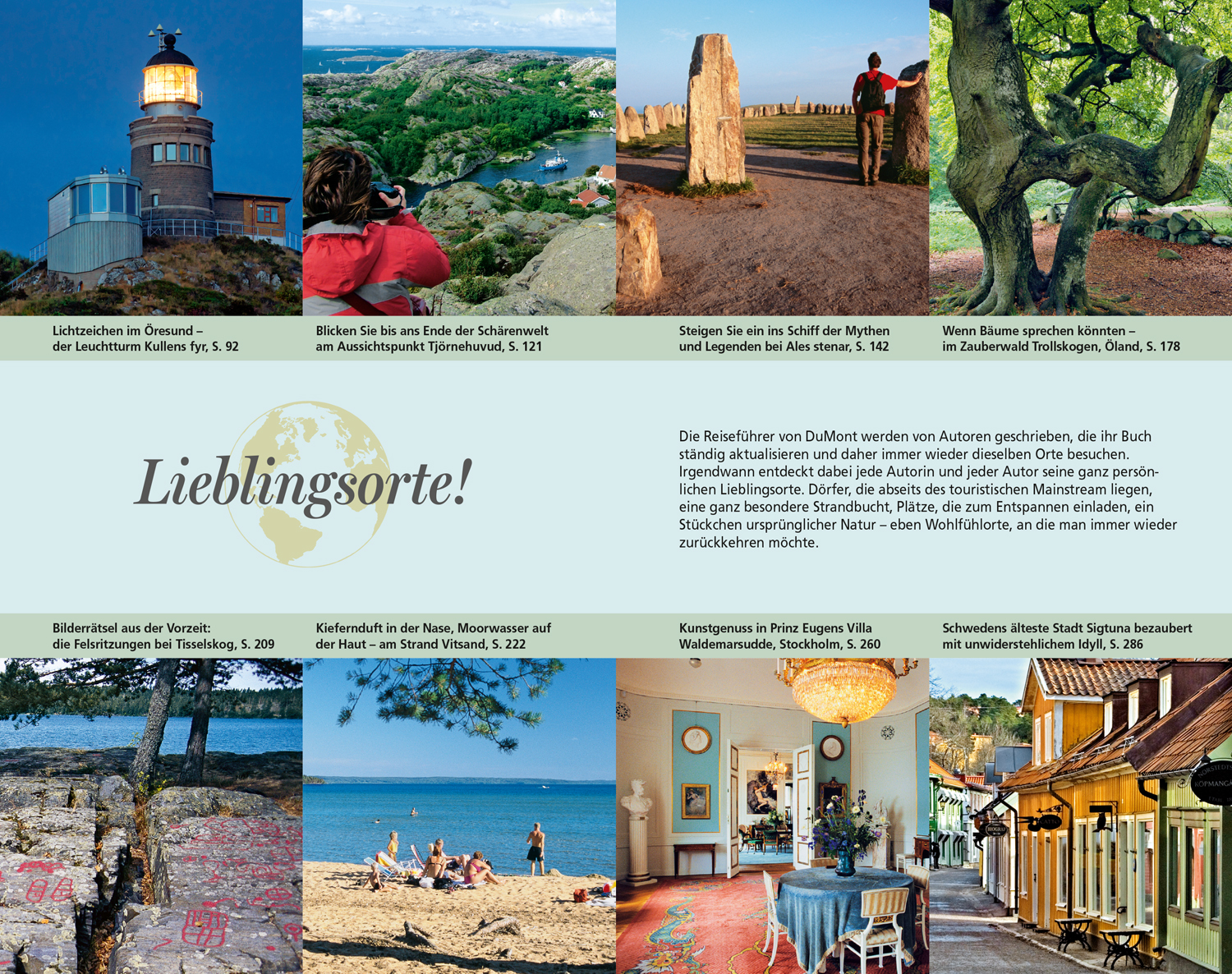 In der aktuellen Auflage empfiehlt die Autorin Petra Juling den Besuch der neuen Markthalle in Malmö oder des 2016 eröffneten Ikea-Museums in Småland. Zu ihren besonderen Lieblingsorten gehören ein Aussichtspunkt über der Felsküste von Bohuslän auf der Insel Tjörn ebenso wie ein Traumstrand im Nationalpark Tiveden und der Trollwald auf der Insel Öland.