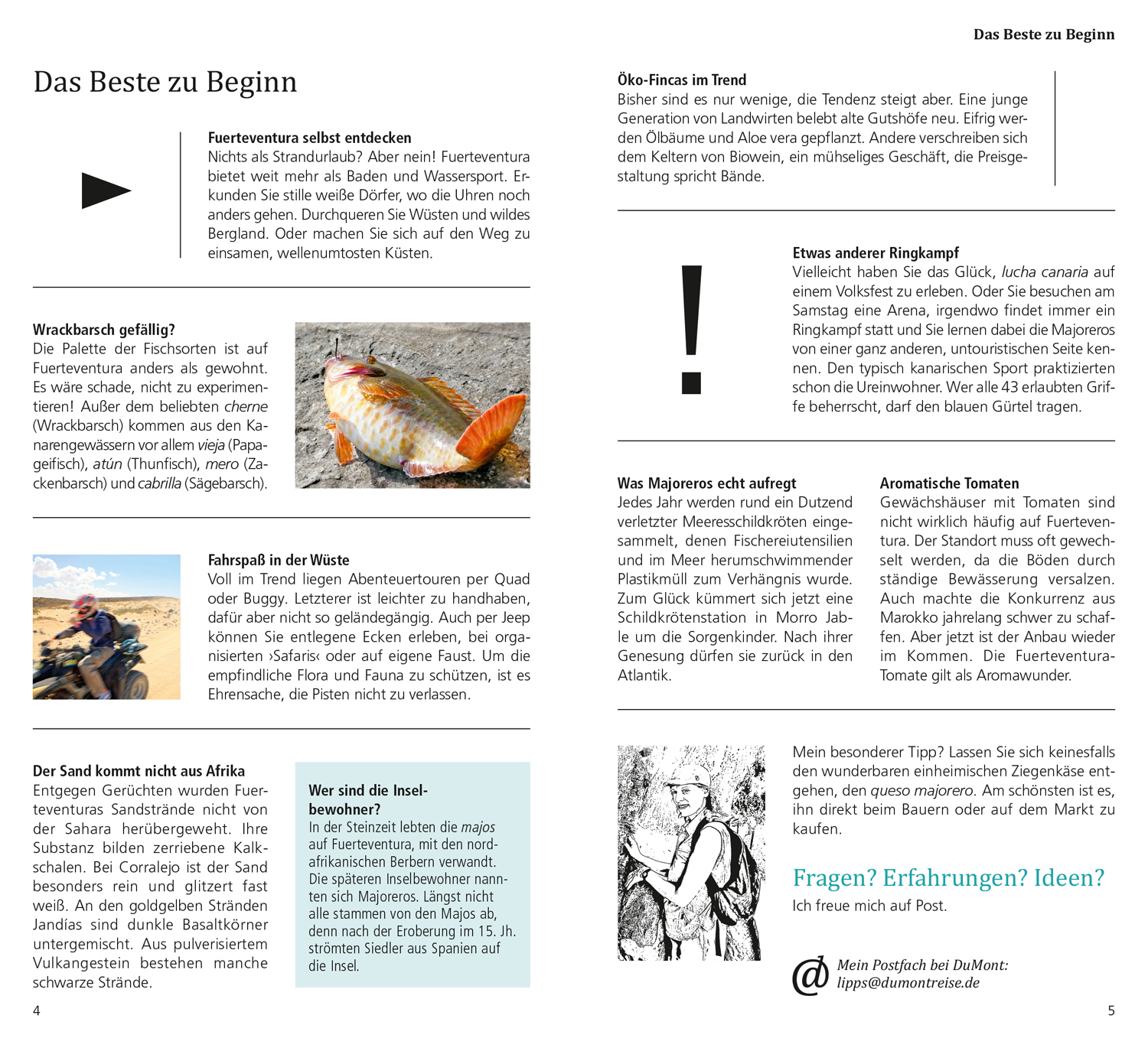 Das Beste zu Beginn. Das ist Fuerteventura. Fuerteventura in Zahlen. So schmeckt Fuerteventura. Ihr Fuerteventura-Kompass: Ostküste, Halbinsel Jandia, Das Inselinnere, Der Norden. Hin & Weg. O-Ton Fuerteventura. Kennen Sie die?
