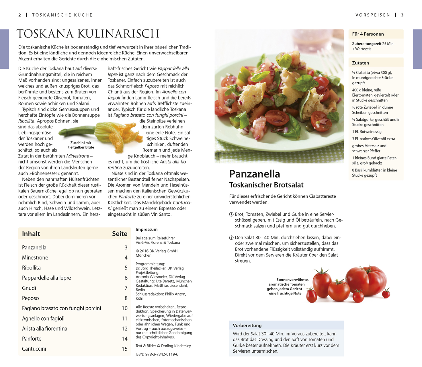 -Mit dem einzigartigen Mini-Kochbuch zum Herausnehmen mit typischen Gerichten wie Panzanella, Gnudi oder Cantuccini entdecken Sie die kulinarische Seite von Florenz und der Toskana.