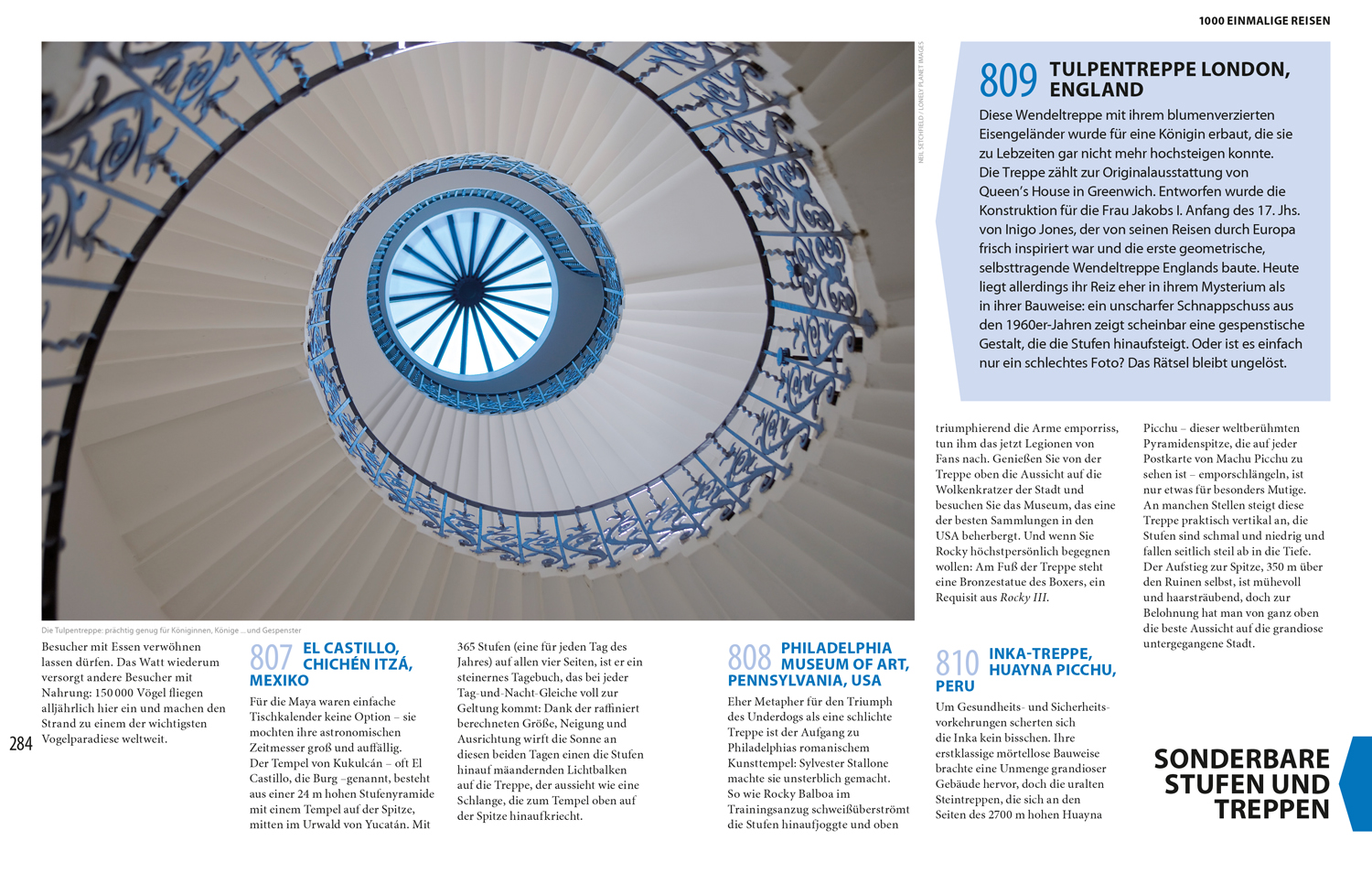 Altbekannte Reiseziele einmal anders betrachten oder eine Reise nach ganz neuen Gesichtspunkten planen? Die aufregendsten Paraden der Welt erleben oder einmal die unheimlichsten Geisterstädte besuchen? Dabei hilft der Lonely Planet "1000 Einmalige Reisen". Dieser Band gibt der Urlaubsplanung den besonderen Kick. Er vereint 1000 ausgefallene Tipps in 100 Kapiteln. Dass dies kein langweiliges Reisekompendium ist, lassen bereits Kapitelnamen wie "Die kreativsten Graffitis", "Die wildesten Wasserfälle" oder "Pilgerziele für Musikfans" erahnen. So manche Beschreibung gibt Anlass zum Schmunzeln, etwa wenn vom Diokletianspalast im kroatischen Split von einer "schwer befestigten und prunkvollen Rentnervilla" die Rede ist. Dank atmosphärischer Bilder sind einzelne Spots besonders herausgehoben. Selbst wer glaubt, die Welt bis in den letzten Winkel zu kennen, wird mit diesem Buch noch Neues erfahren!