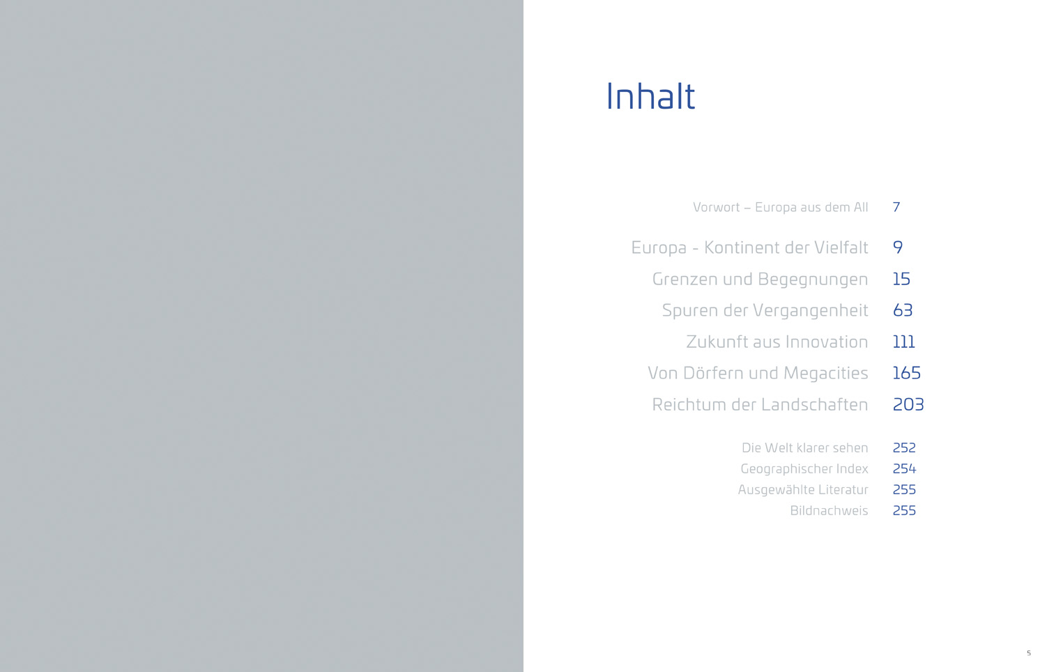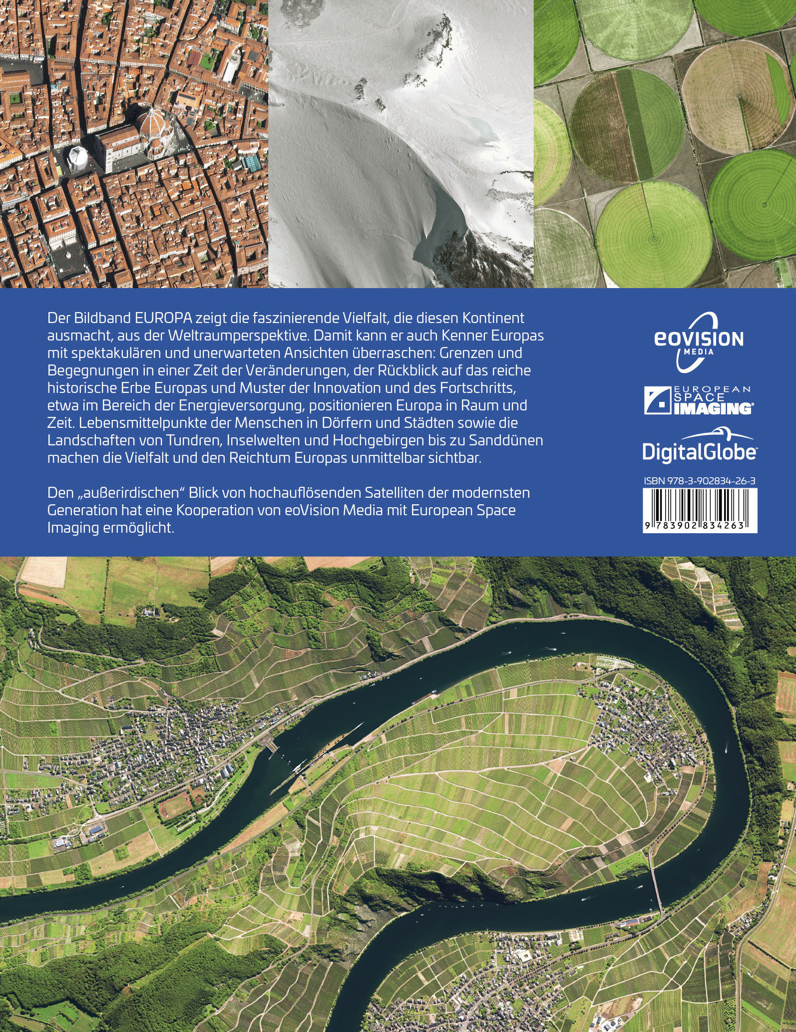 Der Bildband EUROPA zeigt die faszinierende Vielfalt des Kontinents, wie er sich dem Betrachter aus dem All zeigt. Dabei führen spektakuläre Bilder immer wieder zu unerwarteten und unbekannten Perspektiven: alte und neue Kulturlandschaften, das historische Erbe, Aufbrüche in ein Europa der Zukunft, wunderbare Naturlandschaften mit Bergen, Flüssen und Moorlandschaften. Sie alle präsentieren sich in unterschiedlichsten Farben und Strukturen. Damit vermitteln die Aufnahmen, vor welchen Herausforderungen Europa im Wechselspiel zwischen der Erhaltung einer lebenswerten Welt und der Dynamik aktueller Entwicklungen steht. Aktuelle Satellitenaufnahmen spannen einen weiten Bogen über brennende Themen Europas. Sie führen auf eine fantastische Reise zu historischen Stätten und zu Orten, an denen der Aufbruch in die Zukunft sichtbar wird. Die Grenzen Europas werden ausgelotet, zugleich aber auch, wie diese Grenzen für Begegnungen überwunden werden. Spuren der Vergangenheit werden verfolgt, die in ihrer Ästhetik und Bedeutung das historische Erbe des Kontinents weitertragen - in eine Zeit, deren Aufkeimen sich in den Mustern der Innovationen zeigt, die der Fortschritt unserer Welt aufprägt. Zudem wird vom Leben in den Dörfern und Städten und vom großartigen Reichtum der Natur- und Kulturlandschaften Europas berichtet. Trotz aller Widersprüchlichkeiten und unbewältigten Aufgaben entsteht durch den Blick aus dem All ein positives und verbindendes Bild eines gemeinsamen Europa, dessen Reichtum und Vielfalt es zu einem wichtigen Partner im Weltgeschehen machen. Die Produktion des Bildbandes erfolgte in Kooperation mit Digital Globe und European Space Imaging.
