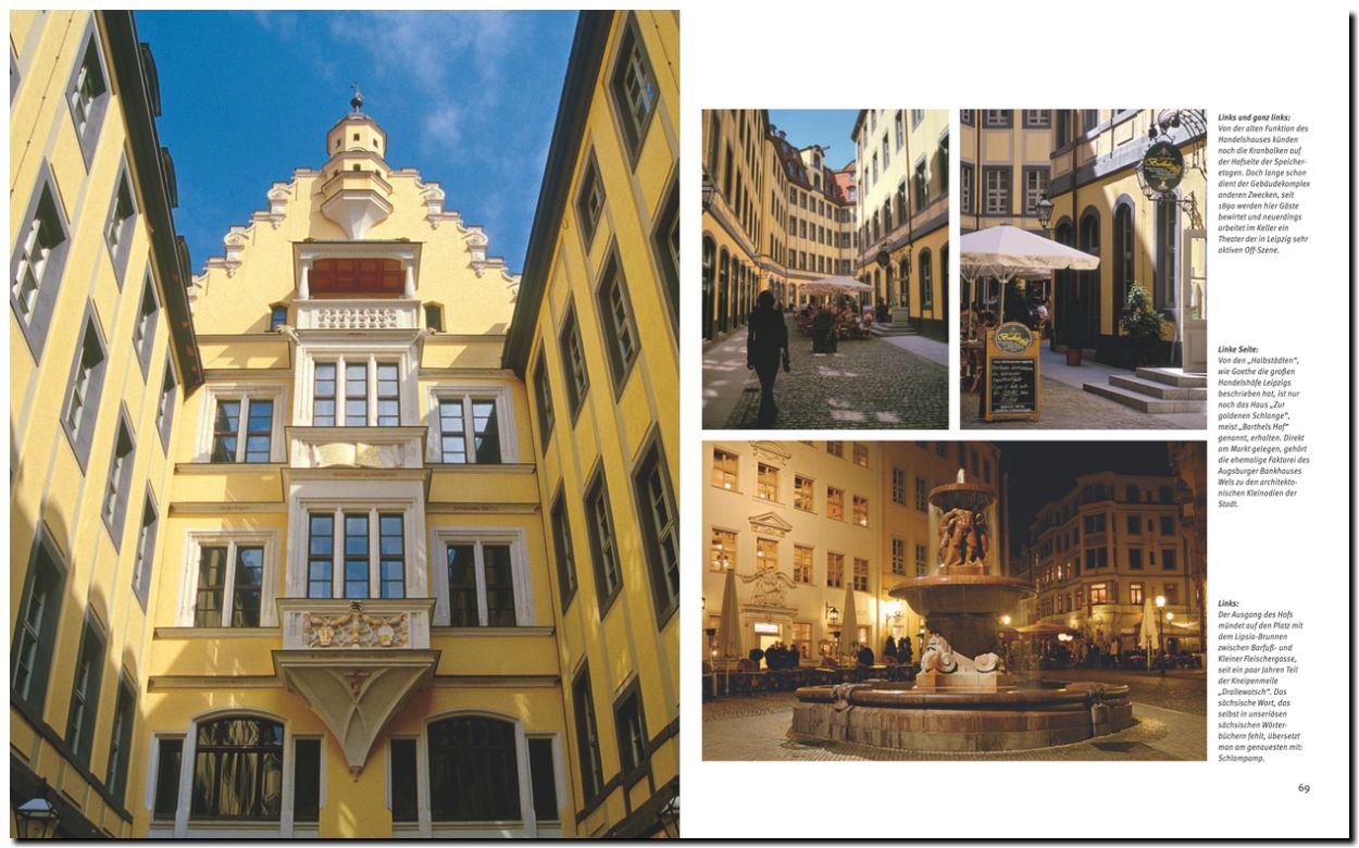 Über 180 Bilder zeigen Leipzig in all seinen Facetten. Vier Specials berichten über herausragende Gebäude, Leipzig als Kunststadt, die kulinarischen Spezialitäten und die schönen Parks der Stadt.