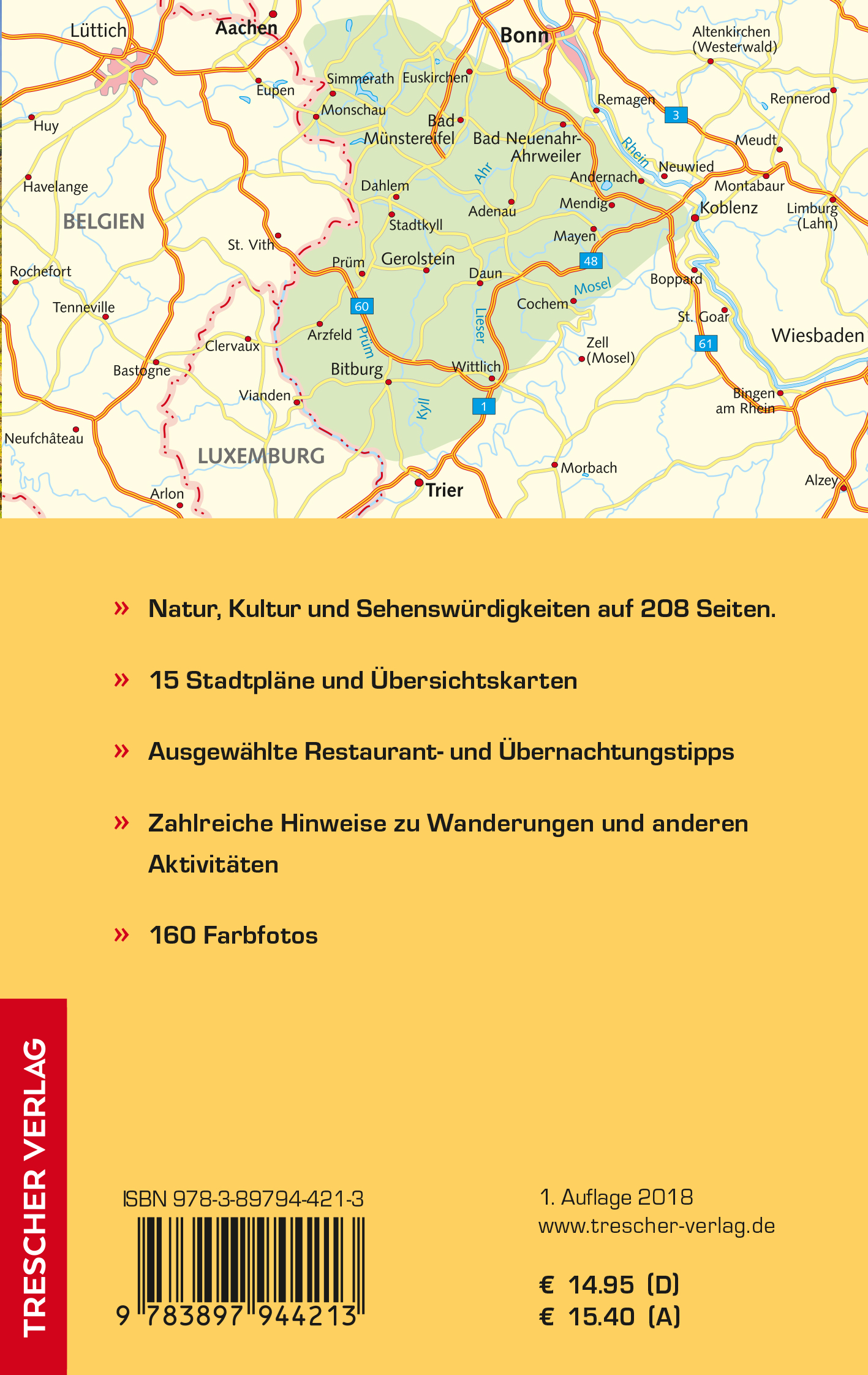 | Schlagworte | 2018 • Aachen • Bitburg • Deutsche Vulkanstraße • Eifel • Eifelgau • Eifelpark • Eifel Reiseführer • Eifelsteig • Eifel Unterkunft • Eifel Urlaub • Gerolstein • Hocheifel • Hohe Acht • Hohes Fenn • Koblenz • Kölner Umland • Meerfelder Maar • Monschau • Moseleifel • Niedereifel • Nordrhein-Westfalen • Nürburgring • Prüm • Pulvermaar • Reiseführer • Rhein • Rheineifel • Rheinisches Schiefergebirge • Rheinland • Rureifel • Rursee • Schwarzer Mann • Trescher Reiseführer Eifel • Trescher Verlag Reiseführer • Trier • Urftsee • Vennvorland • Vulkaneifel • Wandern • Weißer Stein • Westeifel |