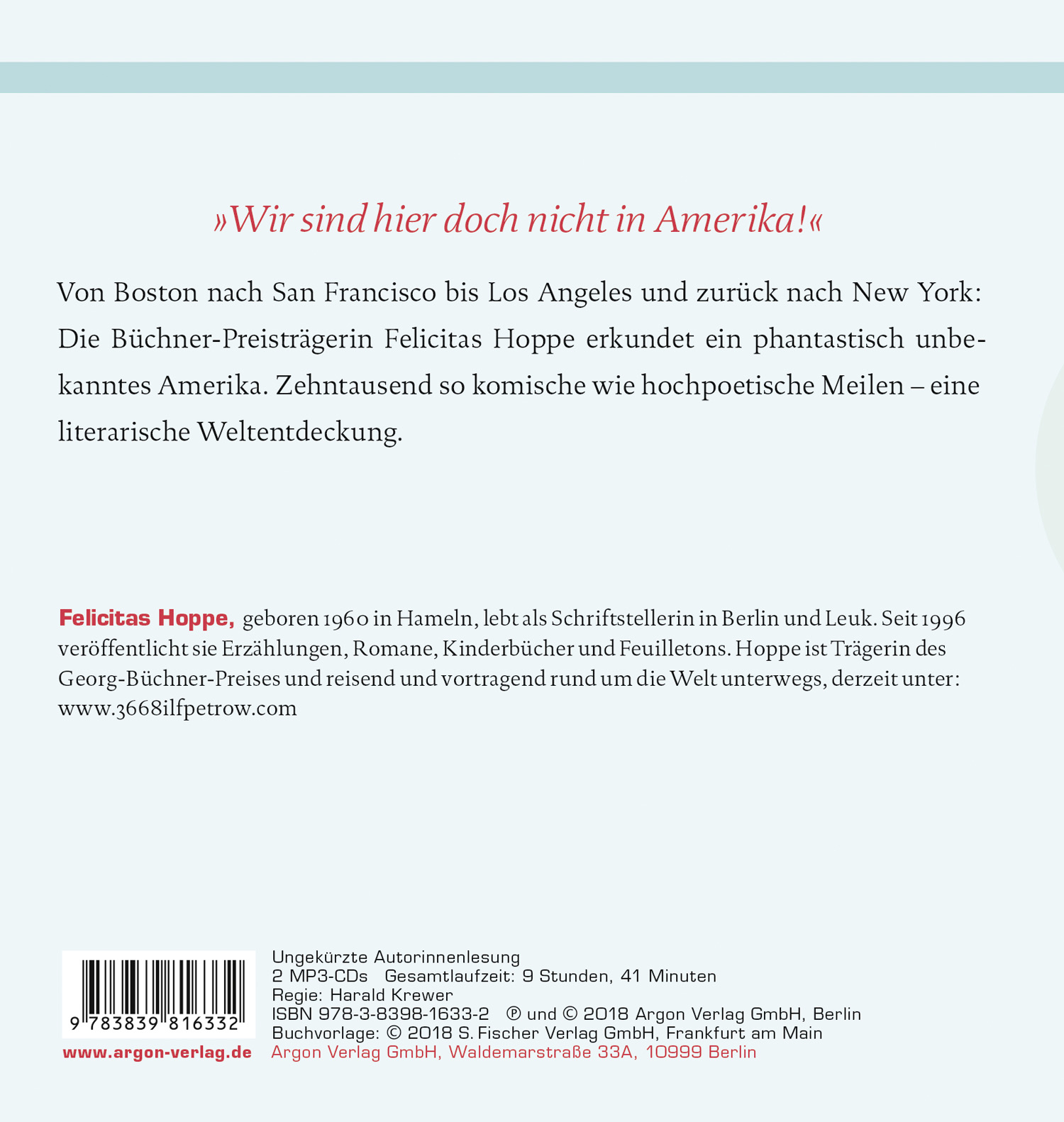 Zehntausend komische wie hochpoetische Meilen reist Felicitas Hoppe von Boston über San Francisco bis Los Angeles und zurück nach New York. Hellwach begibt sie sich als literarischer Wirbelsturm auf die Spuren von Ilf und Petrow, zweier russischer Schriftsteller, die 80 Jahre vor ihr unterwegs waren und zu Kultfiguren wurden. Ob Hoppe die Ford-Werke und den ersten elektrischen Stuhl besichtigt, nebenbei den Zaun von Tom Sawyer streicht, in einem Tornado verschwindet oder im Auge des Sturms auf Quentin Tarantino persönlich trifft – Prawda lässt uns Dinge sehen und hören, wie sie über das unglaublichste Land der Erde noch nie gesagt wurden: eine literarische Weltentdeckung.