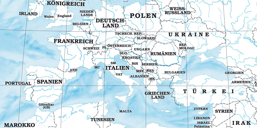 Diese besondere Weltkarte ist ideal geeignet um bereits vergangene oder geplante Reisen darzustellen. Länder sind weiß, Gewässer blau und Ländergrenzen schwarz eingezeichnet. Die Länder können nach eigenem Geschmack ausgemalt, beklebt oder individuell gestaltet werden. Auch Routen lassen sich gut sichtbar eintragen. Ausführung als Wandkarte / Markiertafel:Die Karte wird auf eine stabile Kunststoffplatte aufkaschiert, mit Folie überzogen und mit einem silberbeschichteten Alurahmen beleistet. Mit wasserlöslichen Stiften beschriftbar und abwischbar. Mit Markiernadeln, Pins oder Fähnchen können Orte markiert werden. Die Aufhängevorrichtung ist von vorne nicht sichtbar. Gewicht: ca. 2 kgFormat: 70 x 100 cmDiese Karte ist auf Anfrage auch in englischer Ausführung lieferbar.