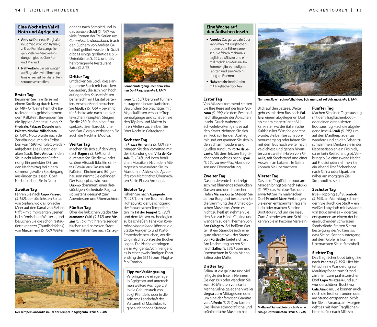 -Umfangreiche Porträts stellen die beeindruckende Natur und Kultur Siziliens vor wie Film und Theater, Kunst und Literatur oder Geologie, Landschaft und Tierwelt Siziliens.Im Kapitel "Zu Gast in Sizilien" gibt es umfangreiche Tipps zu Restaurants, Shopping, Aktivurlaub und Unterhaltung. Genießen Sie z.B. klassische Opern von Verdi und Puccini im Teatro Massimo in Palermo oder gehen Sie auf Tauchkurs in der Äolischen Inselwelt.