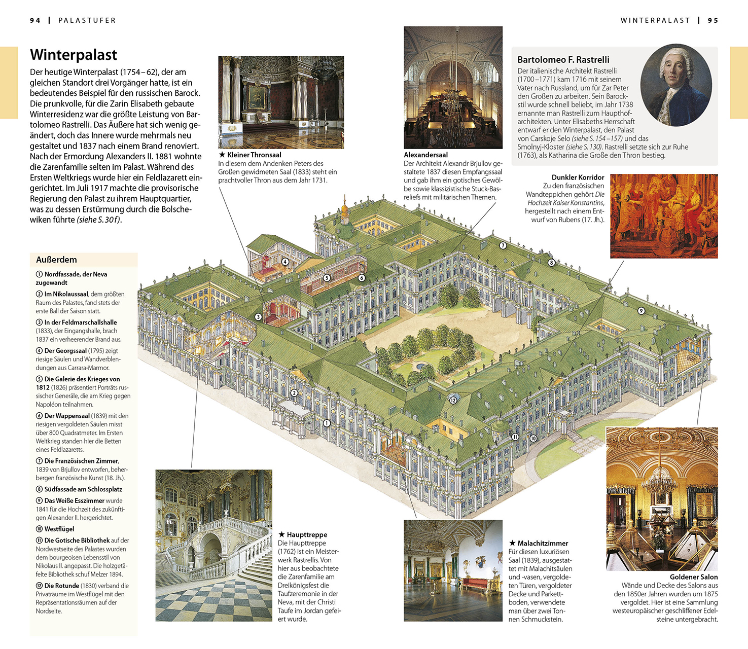 -3D-Aufrisszeichungen vom Winterpalast oder von der Isaakskathedrale sowie über 600 hochwertige Farbfotografien von der farbenprächtigen Gewölbedecke der Erlöserkirche oder von der Vasilevski-Insel bieten spannende Einblicke in Land, Leute und die wichtigsten Sehenswürdigkeiten.