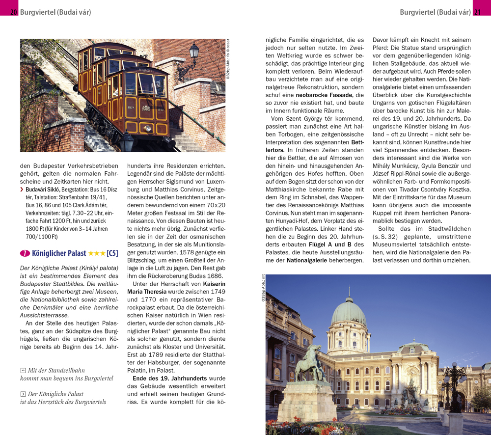 Dazu: kostenlose Web-App für Smartphone, Tablet und PC mit Stadtplan- und Satellitenansichten passend zum Text, Routenführung zu allen beschriebenen Sehenswürdigkeiten, Verlauf des Stadtspaziergangs, seitenbezogenen Updates nach Redaktionsschluss sowie einem Mini-Audiotrainer Ungarisch