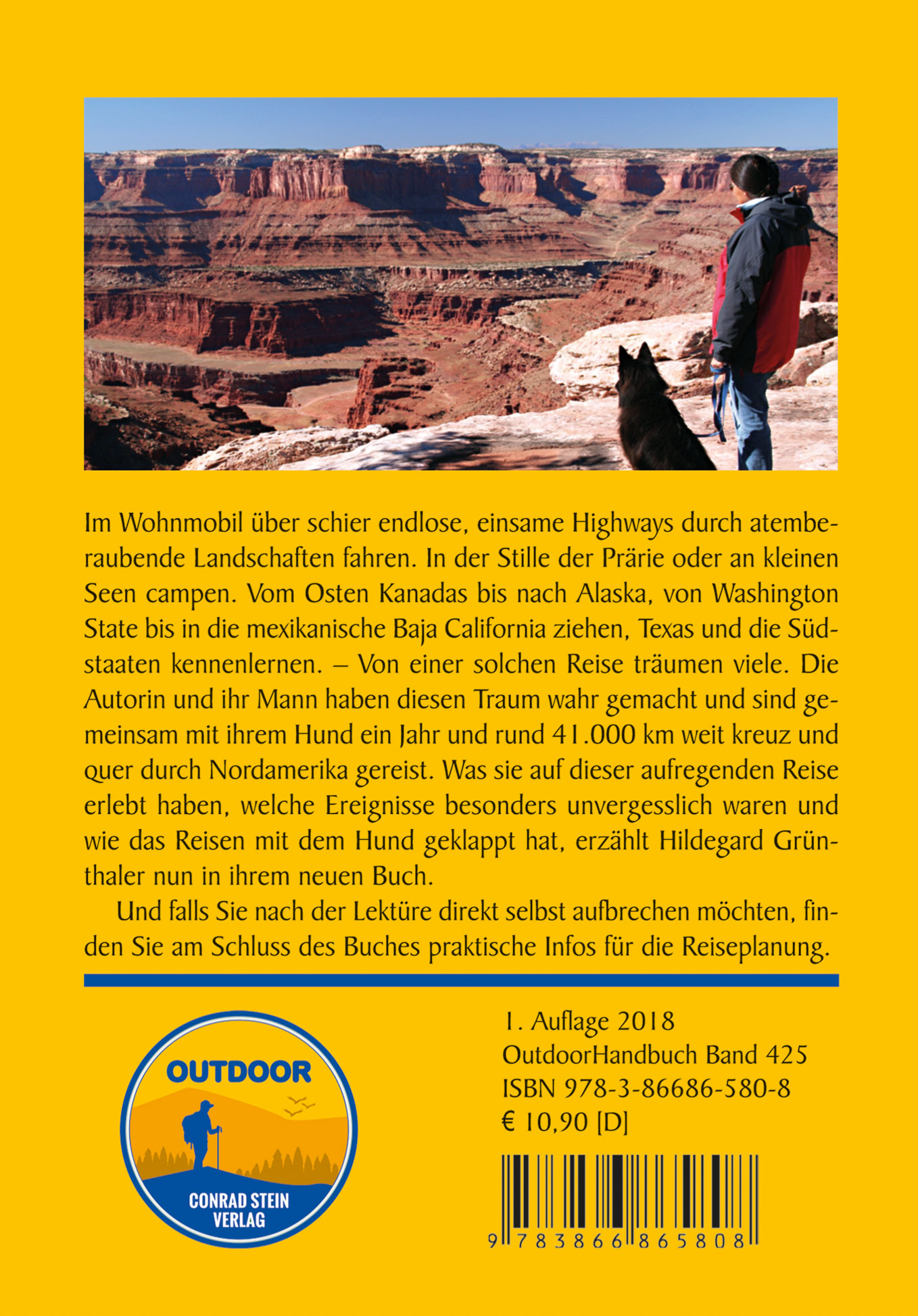 Der drangvollen Enge und dem Stress des europäischen Verkehrs entfliehen und stattdessen im Wohnmobil über schier endlose, einsame Highways durch atemberaubende Landschaften fahren. In der Stille der Prärie oder an kleinen Seen campen. Vom Osten Kanadas bis nach Alaska, von Washington State bis in die mexikanische Baja California ziehen, Texas und die Südstaaten kennenlernen. Den faszinierenden Kontrast der Landschaften, den Mix aus amerikanischer Kultur und Geschichte erleben. - Von einer solchen Reise träumen viele. Die Autorin und ihr Mann haben diesen Traum wahr gemacht und sind gemeinsam mit ihrem Hund ein Jahr und rund 41.000 km weit kreuz und quer durch Nordamerika gereist. Was sie auf dieser aufregenden Reise erlebt haben, welche Ereignisse besonders unvergesslich waren und wie das Reisen mit dem Hund geklappt hat, erzählt Hildegard Grünthaler nun in ihrem neuen Buch. Wer nach der Lektüre direkt selbst aufbrechen möchte, findet als kleines Extra am Schluss des Buches außerdem praktische planungs- und reiserelevante Informationen, z. B. zur Verschiffung des Wohnmobils, zu Visa, Versicherungen und zum Reisen mit Hund.