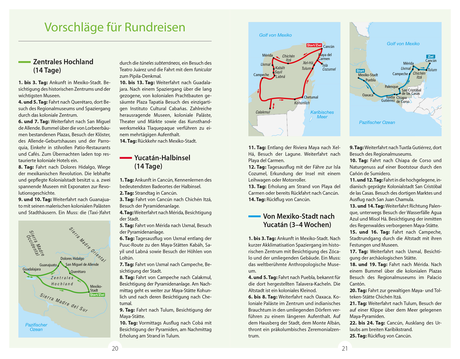 lt;p>Wissenswertes über Mexiko, Wissenswertes für die Reise, Kulinarisches Lexikon, Sprachführer, Mexiko-Stadt und Umgebung, das zentrale Hochland, Mexikos Norden mit Baja California, von Mexiko-Stadt zum Pazifik, Badeorte am Pazifik, von Mexiko-Stadt zum Atlantik, Oaxaca, Chiapas und Tabasco, die Halbinsel Yucatán, 57 Karten und Pläne plus eine separate Mexiko-Reisekarte im Maßstab 1:2.500.000.
