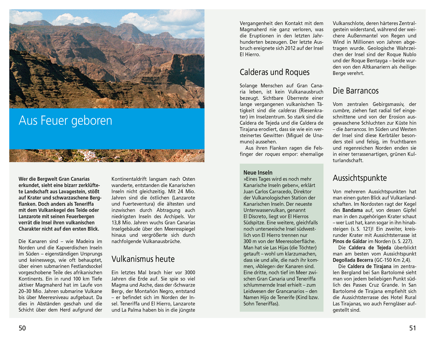 Im DuMont Reise-Taschenbuch Gran Canaria verrät die Autorin auch ihre ganz persönlichen Lieblingsorte wie das malerische Gebirgsdorf Fataga oder die "Schlucht der Turmfalken", die selbst an den heißesten Tagen Erfrischung bietet. In der aktuellen Auflage empfiehlt sie die hoch über dem Abgrund schwebende Aussichtskanzel am Mirador del Balcón mit Blick über den Atlantik bis nach Teneriffa.