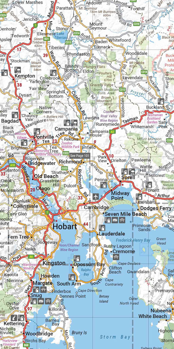 Atlas Australien208 Seiten, Kartenübersicht mit Seitenverweisen, Liste der Nationalparks mit touristischen Einrichtungen, Strassenkarten mit Sehenswürdigkeiten: Queensland, New South Wales, Victoria, Tasmania, South Australia, Western Australia, Northern Territory, Stadtpläne mit Durchgangsstrassen, Index, Distanzentabelle. Format 25,2 x 34,5 cm, Spiralbindung, laminiert